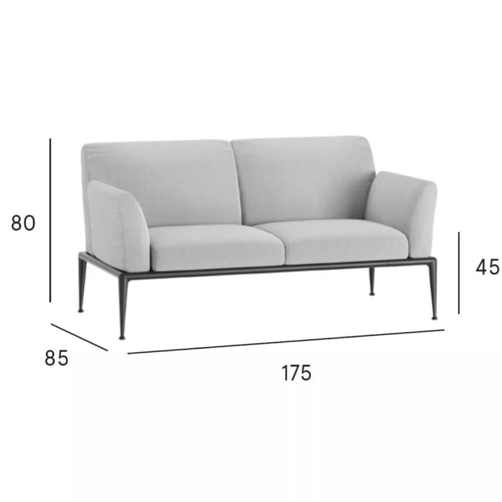 Fast New Joint 2-Sitzer-Sofa | ohne Armlehne Fast New Joint ist eine auffallend elegante Gartenmöbel Kollektion mit einem unverwechselbaren Design, eine Loungegruppe, die für Innen- und Außeneinsatz perfekt geeignet ist. Der Werkstoff Aluminium ist für Outdoor Möbel eines der geeignetsten Materialien überhaupt. Sein geringes Gewicht, die Haltbarkeit, hervorragende statische Eigenschaften und nahezu unbegrenzte Möglichkeiten in der Be- und Verarbeitung ermöglichen eine Vielfalt gestalterischer Optionen. Dank sehr gutem Design genügen die Joint Loungemodule den höchsten Ansprüchen in Ästhetik und Verarbeitung und gleichzeitig entsprechen sie dem Zeitgeist in all seinen Facetten. Die Gestelle bestehen aus extrudierten und im Druckgussverfahren gefertigten Elementen aus Aluminium und sind mit pulverbeschichteter Oberfläche in 14 verschiedenen Farben verfügbar. Oberfläche Durch den Einsatz von Aluminium in Kombination mit Sunbrella® Stoff ist die gesamte New Joint Kollektion sehr witterungsbeständig. Stoffe New Joint Polster- und Kissenbezüge werden mit dem wasserabweichenden Sunbrella® Stoff hergestellt, der speziell für den Außeneinsatz ausgelegt ist. Maße (B × T × H):163 × 85 × 80 cmSitzhöhe: 45 cmGewicht: 55 kg