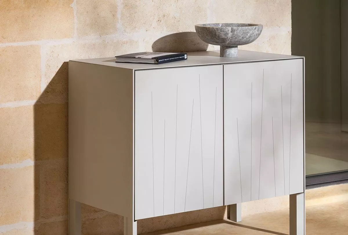 Ninfea ist die neue Serie der Fast Outdoor-Sideboards. Abgesehen von ihrer Funktion als Stauraum haben diese Möbel einen starken Einrichtungswert, da sie Räume und Situationen voneinander trennen. Das eingravierte Muster der Türen erinnert an das gleiche pflanzliche Thema wie bei den anderen Fast-Produkten, das der Designer Alberto Lievore bewusst in Szene setzt.