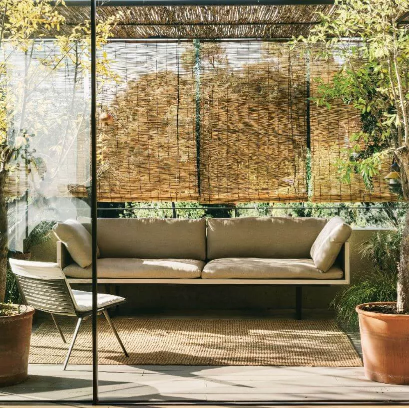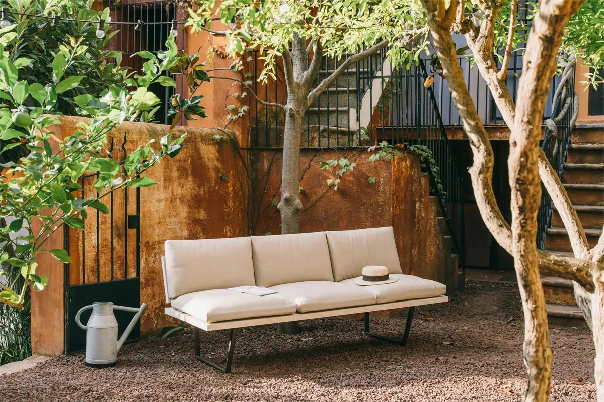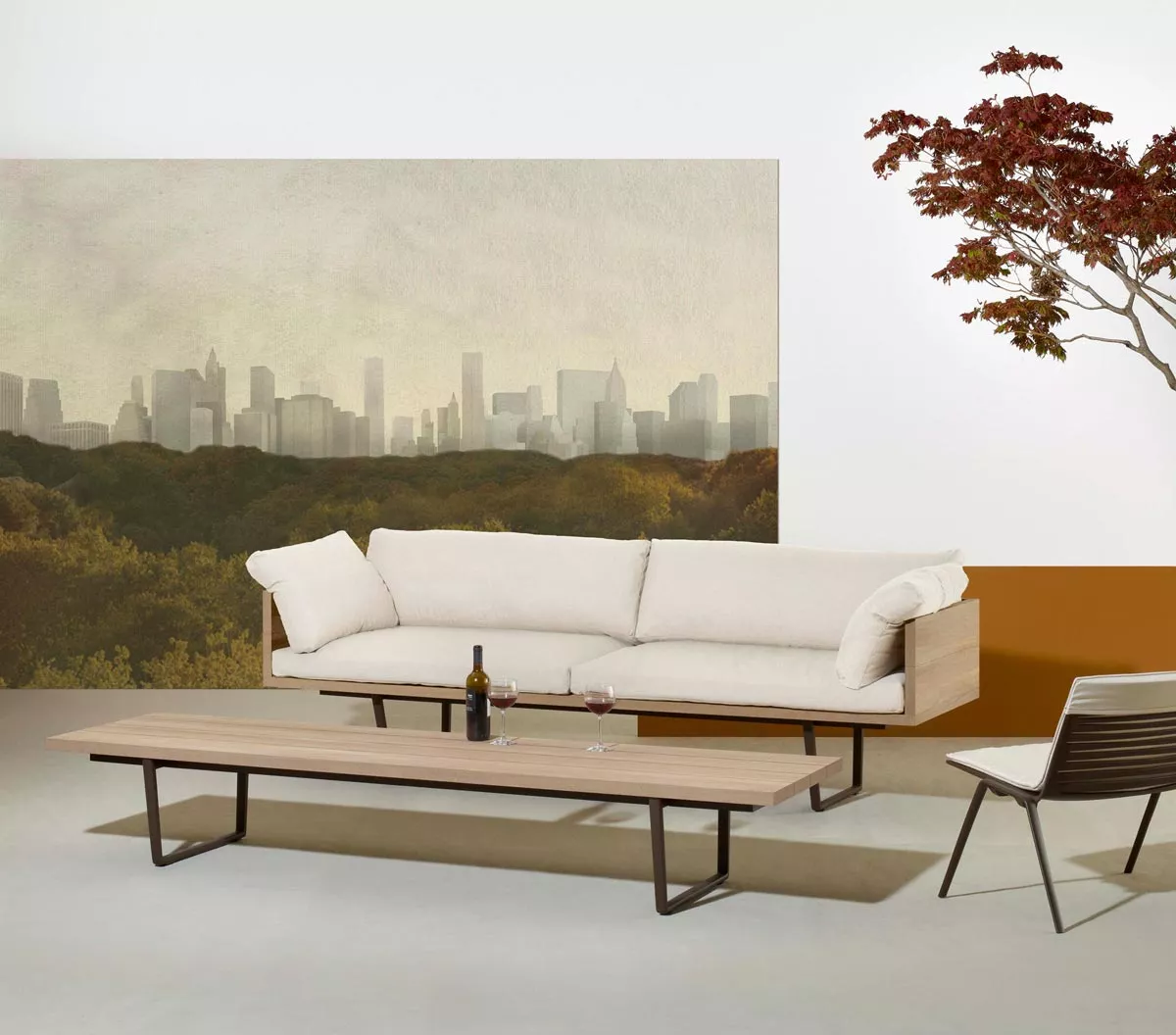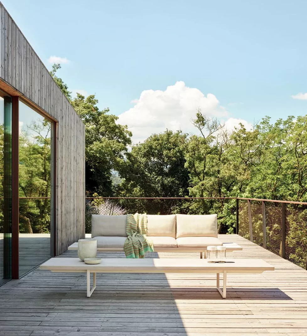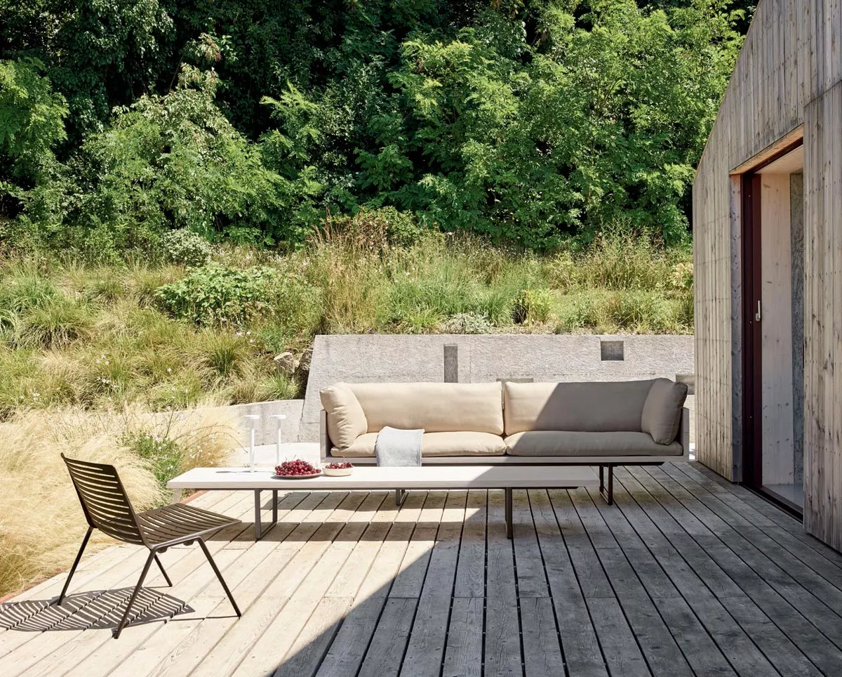 Zwischen Natur und Technologie. Mit „greifbarem“ Ergebnis. Pulverbeschichtetes Aluminium ist beständig gegen Regen, Wind, Kälte und den Wechsel der Jahreszeiten. Die umfassende Kollektion besticht mit robusten, schlichten Formen, die an moderne Interpretationen klassischer Holzbänke denken lassen. Bei Bedarf können die Sofas, Bänke und Chaiselongues der Serie Orizon außerdem mit bequemen outdoortauglichen Kissen ausgestattet werden, um herrlich gemütliche und einladende „Freiluft-Wohnzimmer“ zu gestalten.