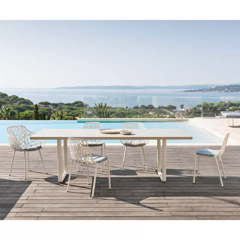 Durch den Einsatz von Aluminium in Kombination mit wetterfestem Stoff ist die gesamte Fast Orizon Kollektion sehr witterungsbeständig.