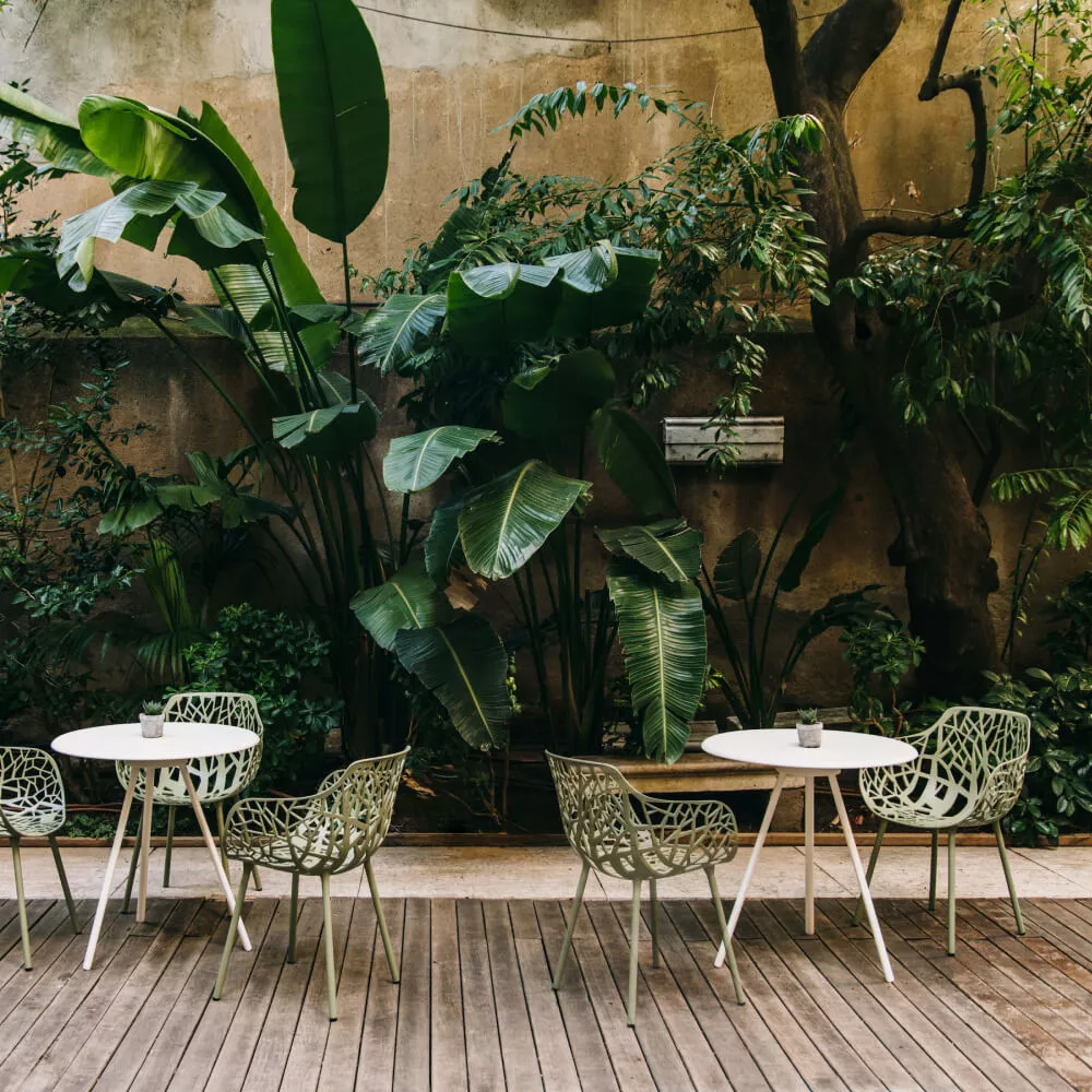 Die Begegnung zwischen der Festigkeit des Materials und dem geringen Gewicht der Formen. In der Zebra-Kollektion wird der Aluminiumdruckguss durch Entfernen strukturiert, was mit einem Spiel von Blöcken und Hohlräumen, die von der Sonne beleuchtet werden, faszinierende geometrische Formen auf dem Boden erzeugt. Für noch mehr Komfort stehen Kissen für Sitz und Rückenlehne zur Verfügung, die mit für den Außenbereich geeigneten Stoffen bezogen sind: wasserfest, schmutzabweisend, UV-beständig und abriebfest. Die Zebra-Kollektion, die sowohl für den Wohn- als auch für den Objektbereich geeignet ist, umfasst: Sessel, Armlehnenstuhl, Loungesessel, dreifach höhenverstellbaren Up & Down-Tisch, Beistelltische mit Aluminium- und HPL-Platten sowie Kaffeetische.