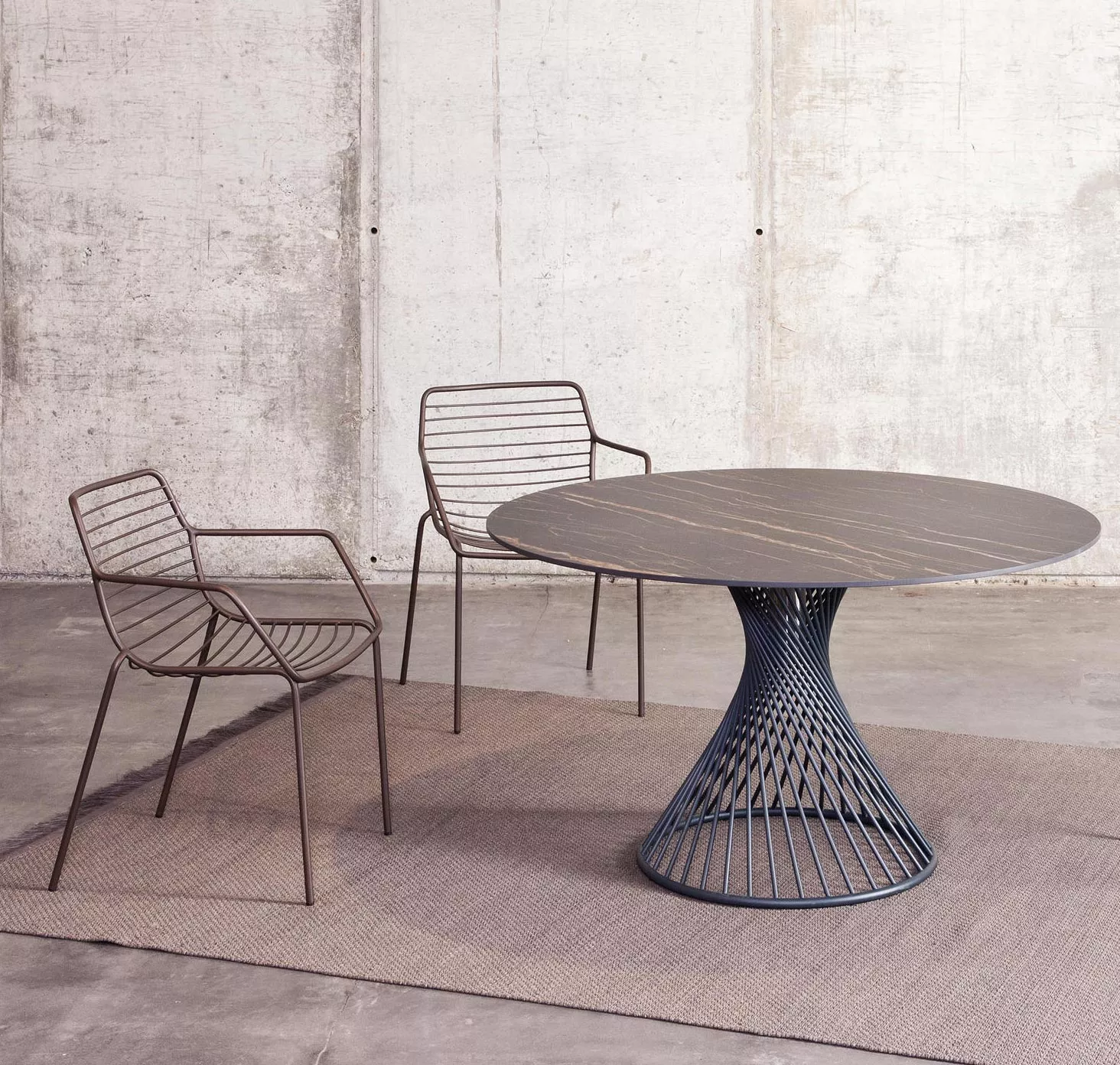 Leicht, stapelbar, und bequem. Zudem nur aus einem besonders wetterfesten und pflegefreien Material hergestellt: Edelstahl, pulverbeschichtet in dark bronze oder anthrazit. Ein Sessel der durch seine transparente Form sich nicht aufdrängt sondern elegant sich im Außenbereich einfügt. Eine ideale Kombination stellt der neue Claris Säulentisch, ein besonderes Highlight für den Außenbereich. Für große Terrassen empfehlen wir den Tierra Tisch. Für Bequemlichkeit sorgen die gesteppten Auflagen für Sitz oder Sitz-Rücken. Mit besonderem Chic zeigt sich der Gartentisch mit den attraktiven 12 mm starken Platten aus fm-ceramtop „Stella“ und „Perl“. Dekorativ und modern sind die Platten in fm-laminat „Graphito“ und „Titan“.