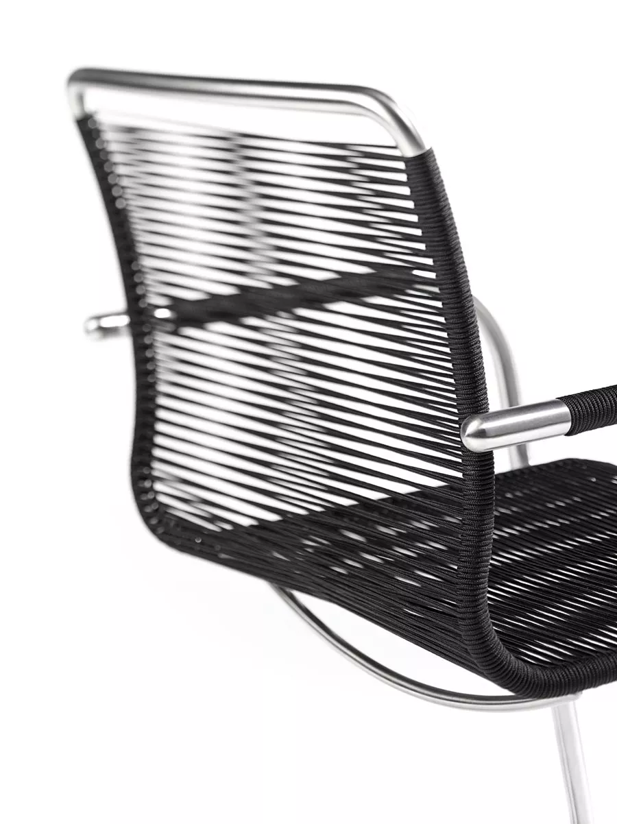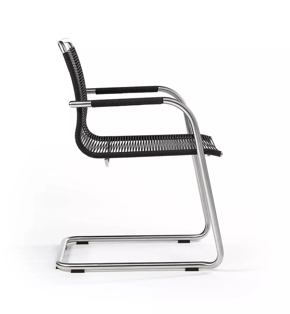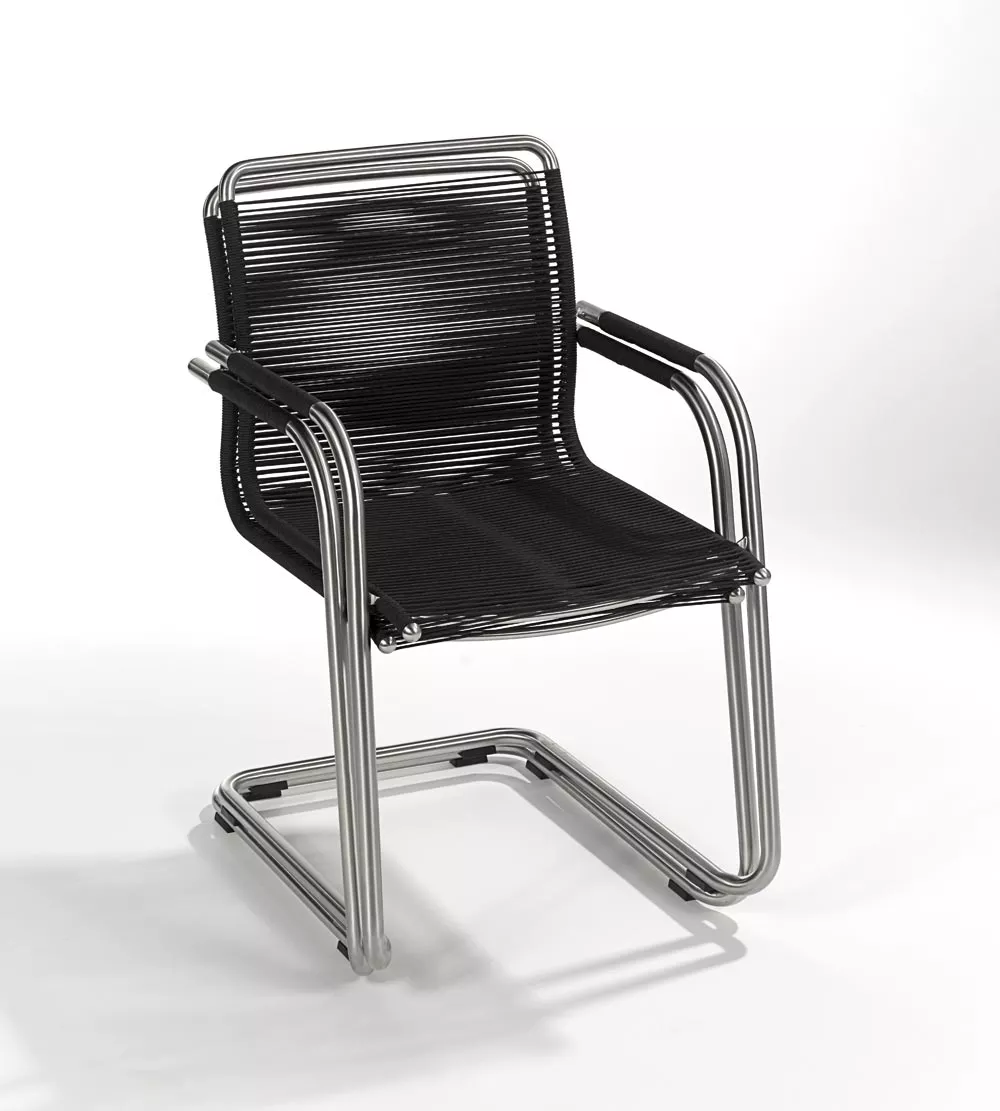 Freischwinger Swing mit Bespannung aus Synthetik-Gewebe und Gestell aus Edelstahl.