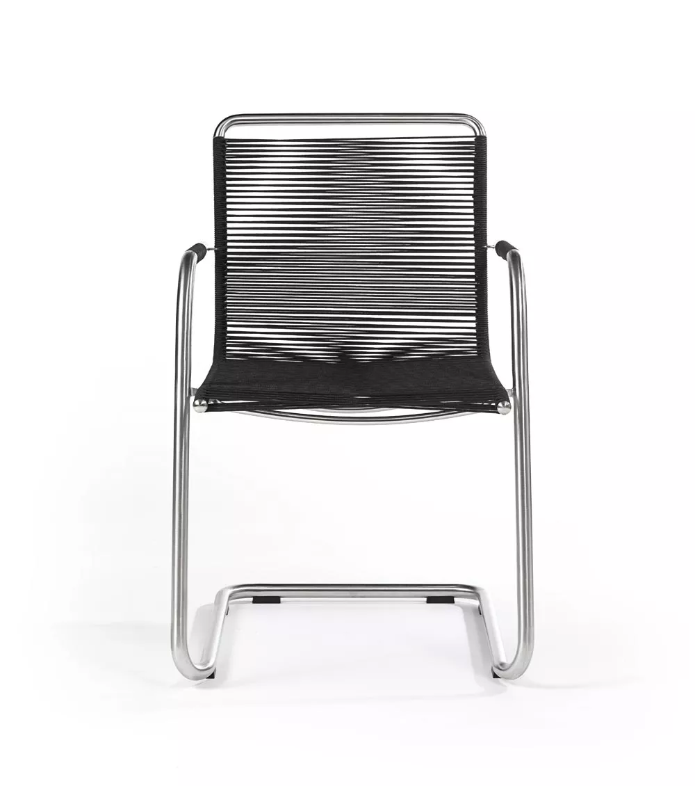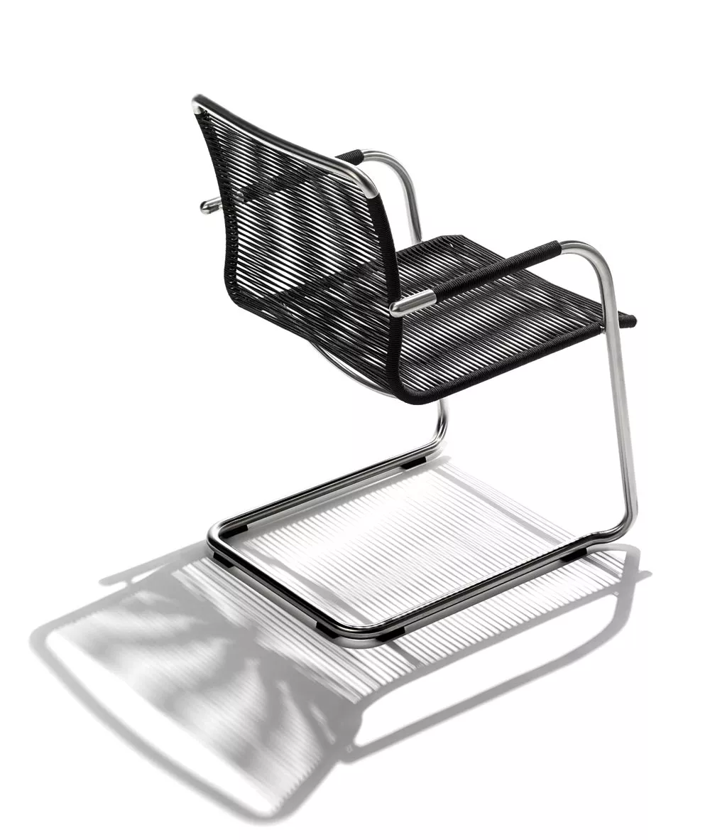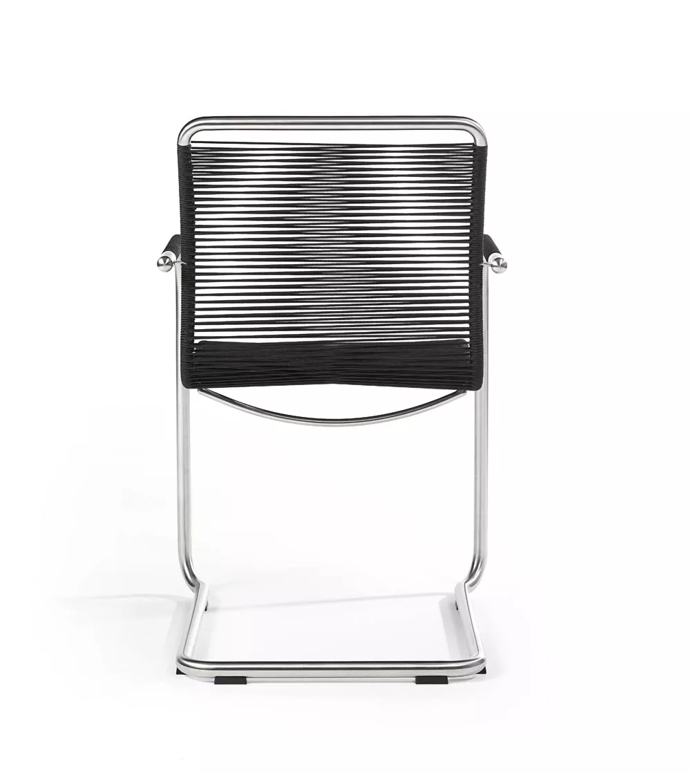 Freischwinger Swing mit Bespannung aus Synthetik-Gewebe und Gestell aus Edelstahl.