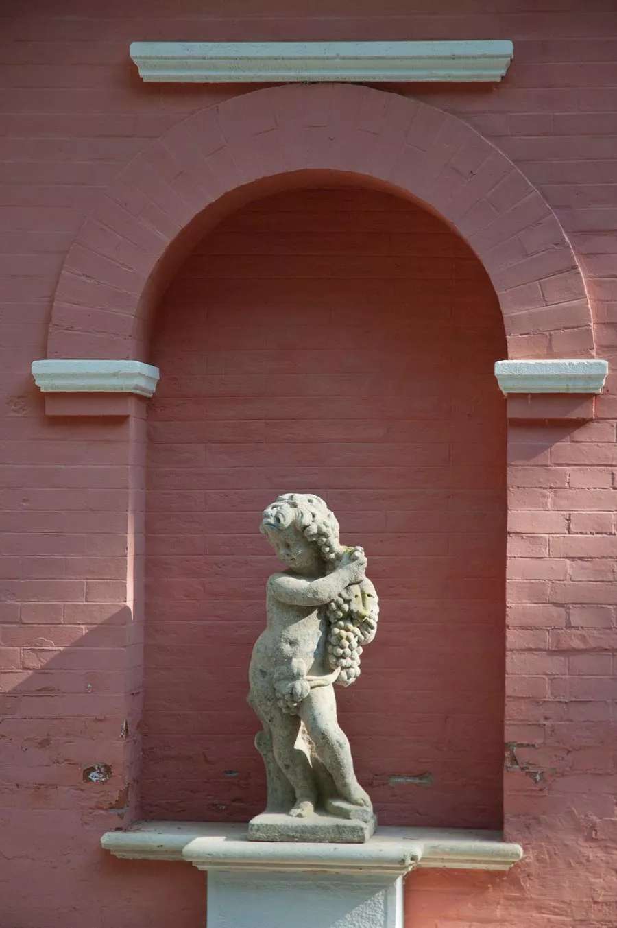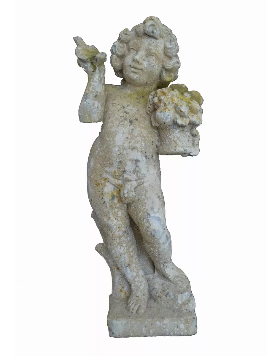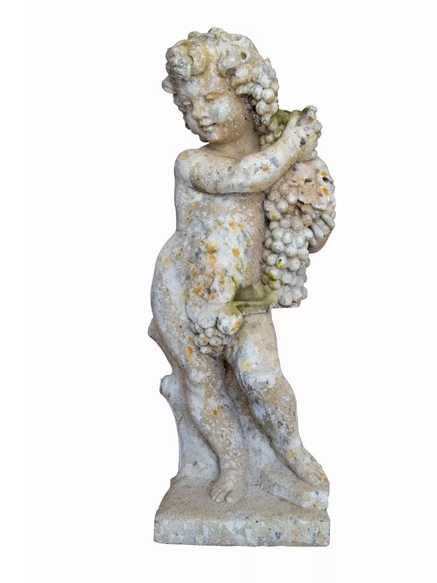 Statue Putti mit Weintraube & Vogel aus Stein von French Pottery