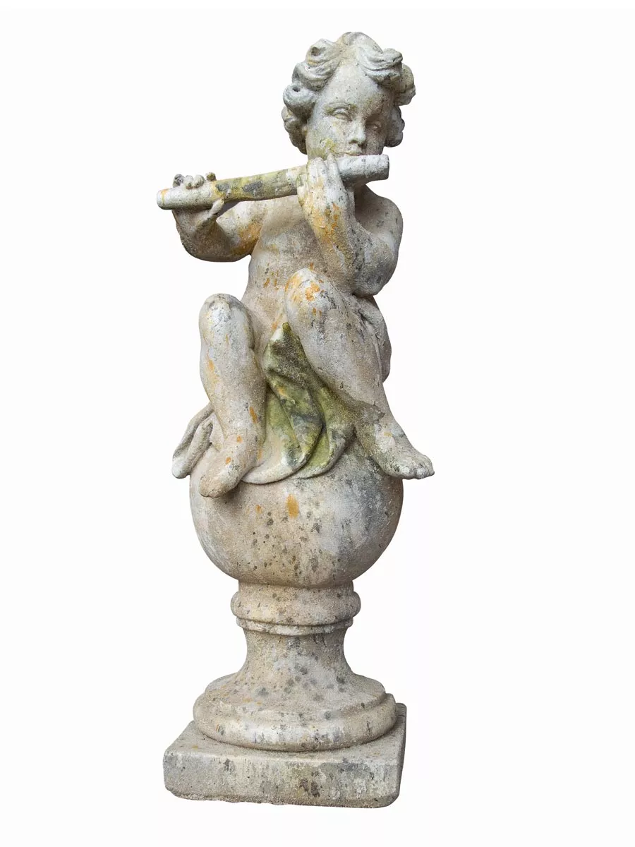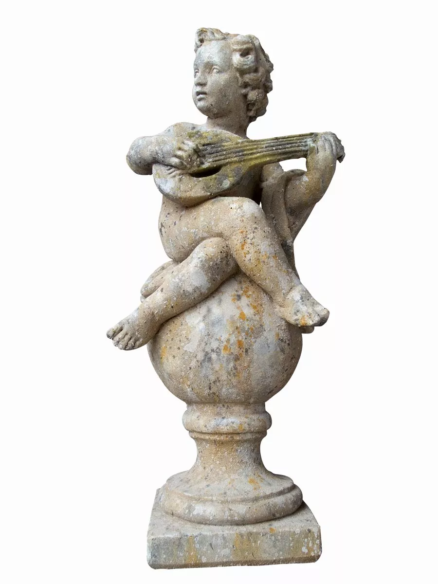 Statue Putti Musiker aus Stein von French Pottery