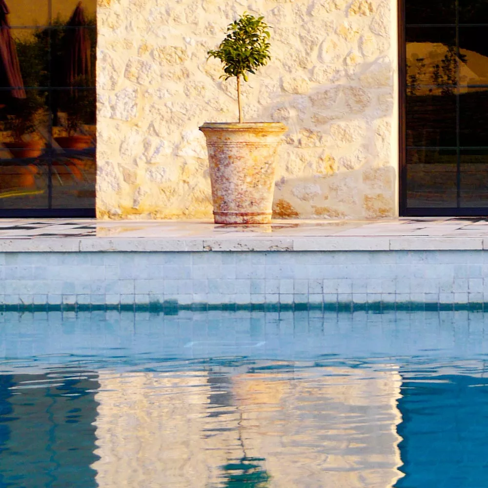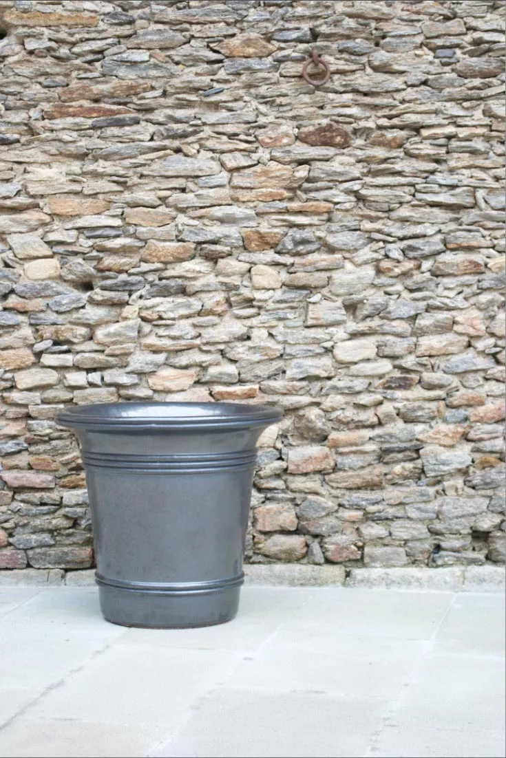 French Pottery ist eine Kollektion von Gefäßen, Vasen und Statuen für Garten und Terrasse. Straight lines and French style for this terra cotta handmade pot. 3 sizes available 60cm(23’’1/2) 70cm (27’’1/2) and 85cm (33’’1/2).