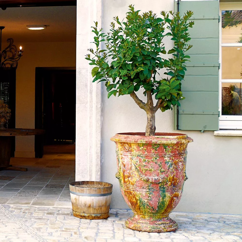 Gartengefäß Terrakotta Languedoc klassisch von French Pottery French Pottery ist eine Kollektion von Gefäßen, Vasen und Statuen für Garten und Terrasse. Terrakotta-Topf mit Medaillon Dekoration ist in einem Provenzalischen Stil handgefertigt . Alle Produkte sind frostfest die Herstellung dieser hochwertigen Produkte erfolgt in erstklassiger Qualität UV-, witterungs- und farbbeständig Terracotta Keramikgefäß leicht zu reinigen Maße Ø int. 43 / Ø ext. 52,5 × 60 cm Gewicht 35 kg Ø int. 58 / Ø ext. 71 × 80 cm Gewicht 85 kg
