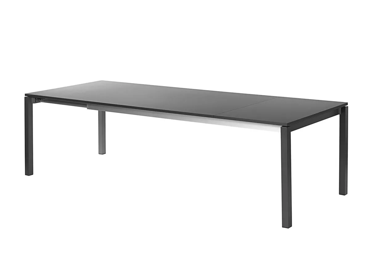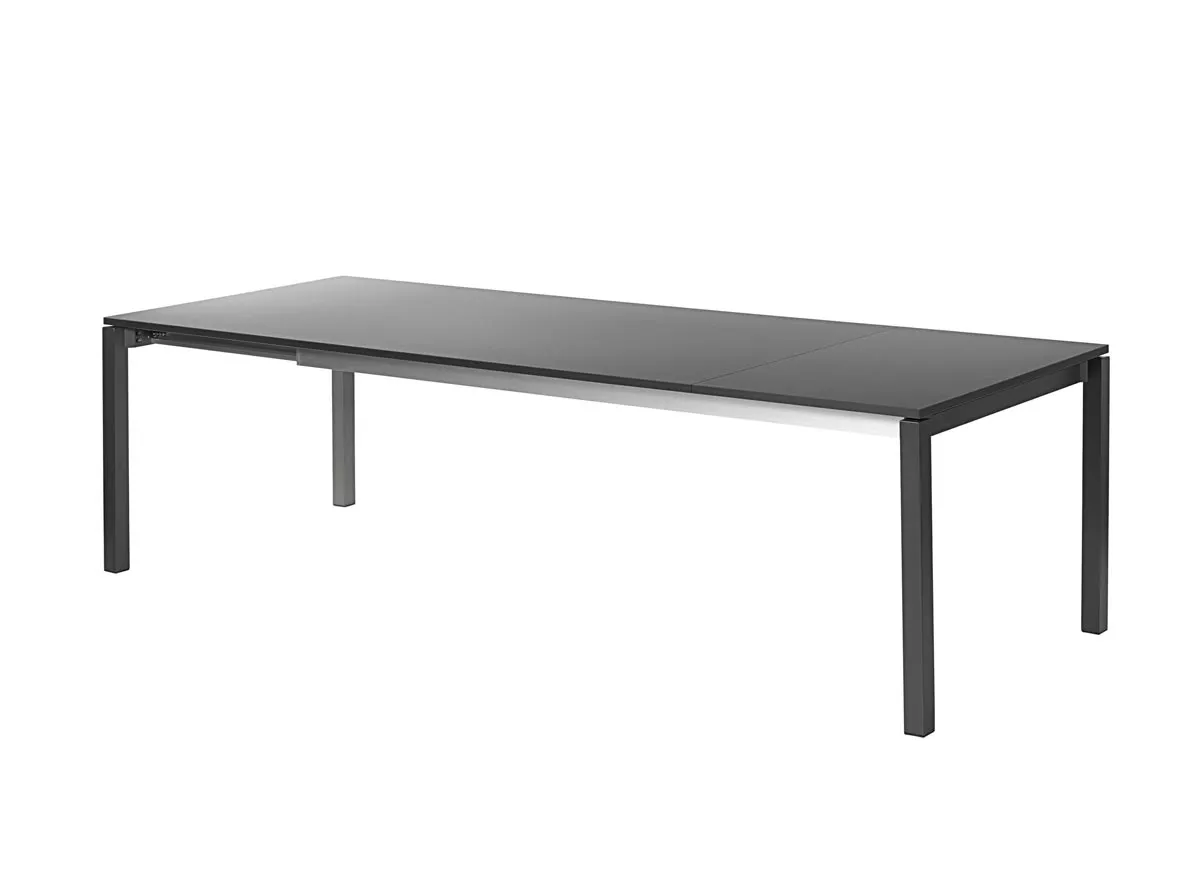 aus Aluminium, metallic-silber pulverbeschichtet oder mit Strukturlack anthrazit matt • Tischbeine quadratisch Das robuste Aluminiumgestell der Rio Tische in anthrazit oder metallic-silber ist eine perfekte Verbindung zu allen Stühlen aus dem gleichen Material. Die stabilen Tischbeine (50x50mm) in Verbindung mit dem solide verschweißten Rahmen tragen auf elegante Weise die unterschiedlichen Tischplatten. Oberflächen aus fm-laminat spezial, fm-ceramtop oder Teak ermöglichen eine perfekte Kombination zu den Rio Sesseln, aber auch zu vielen anderen Sesseln unseres Sortiments. Schraubgleiter ermöglichen einen Höhenausgleich bei Bodenunebenheiten.Rio Outdoor Frontausziehtisch mit eingerückter Zarge