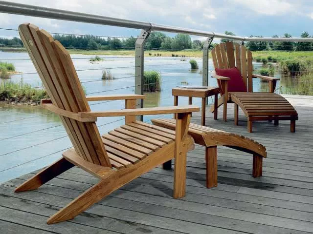Die passende Fußbank zum Armlehnstuhl Adirondack. Die Bank ist aus hochwertigem indonesischen Teakholz gefertigt, dass durch seinen hohen Ölgehalt extrem stabil und witterungsbeständig ist.