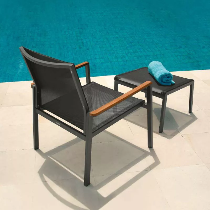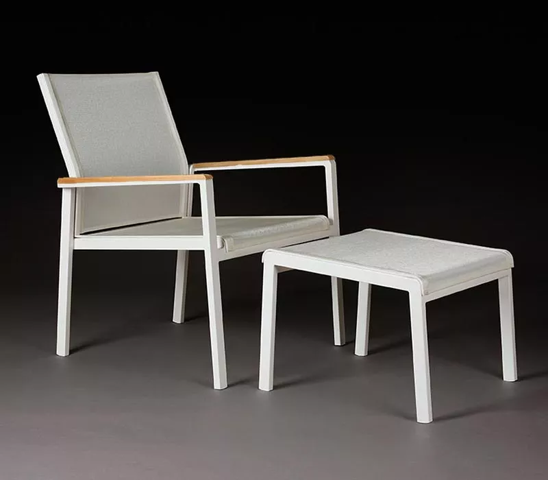 Das Synthetikgewebe ist besonders witterungsbeständig, UV-beständig und reißfest. Es bietet zusätzlich einen hervorragenden Sitzkomfort und ist extrem pflegeleicht.