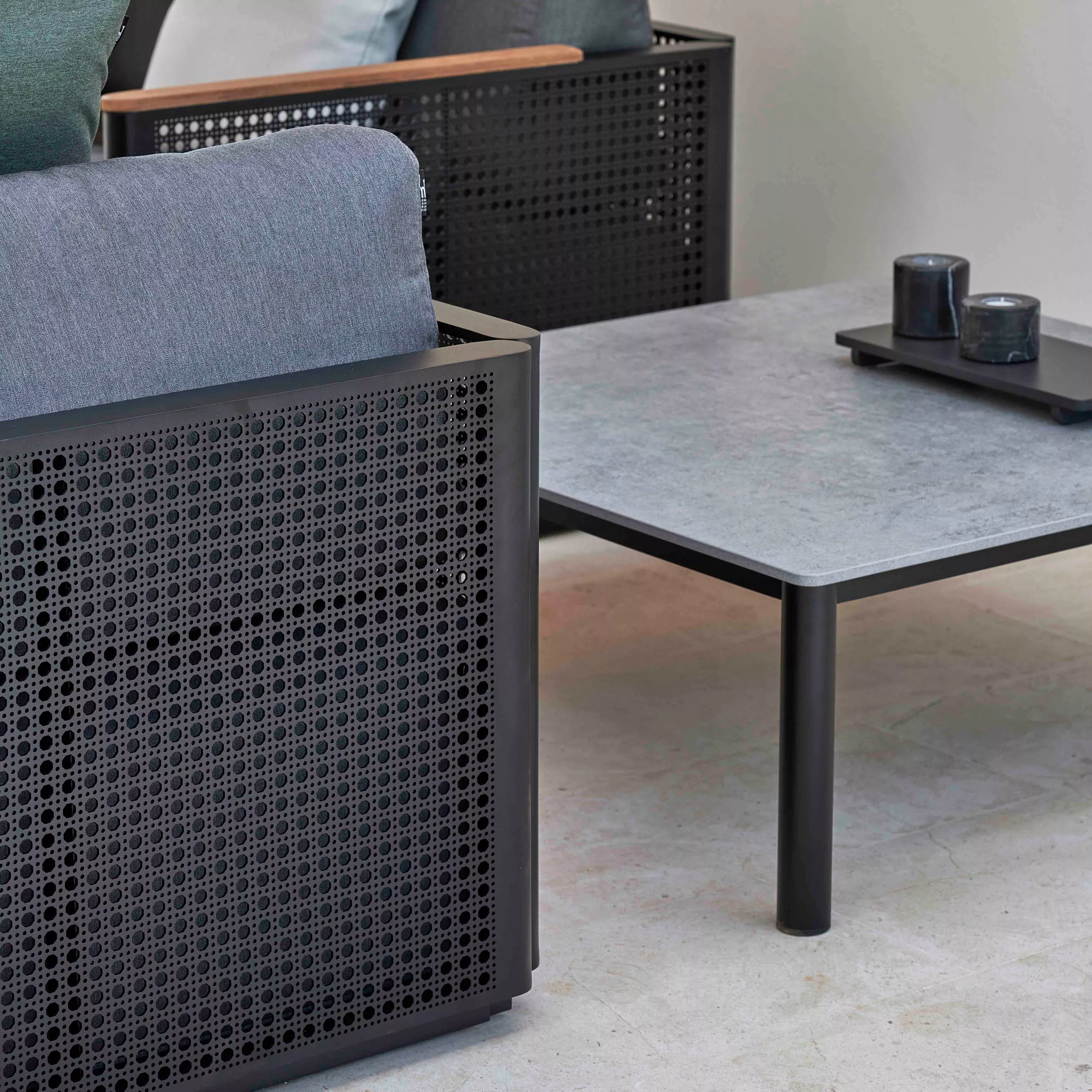 Die BOSC-Kollektion spiegelt das Handwerk und die Tradtion der mediterranen Gegenden auf Menorca wieder. Geflecht aus Weidengras wird hier neu interpretiert und auf subtile Art in das Material Aluminium übertragen. Die Kollektion besteht aus Sessel, Sofas, Loungemodulen und Beistelltischen.