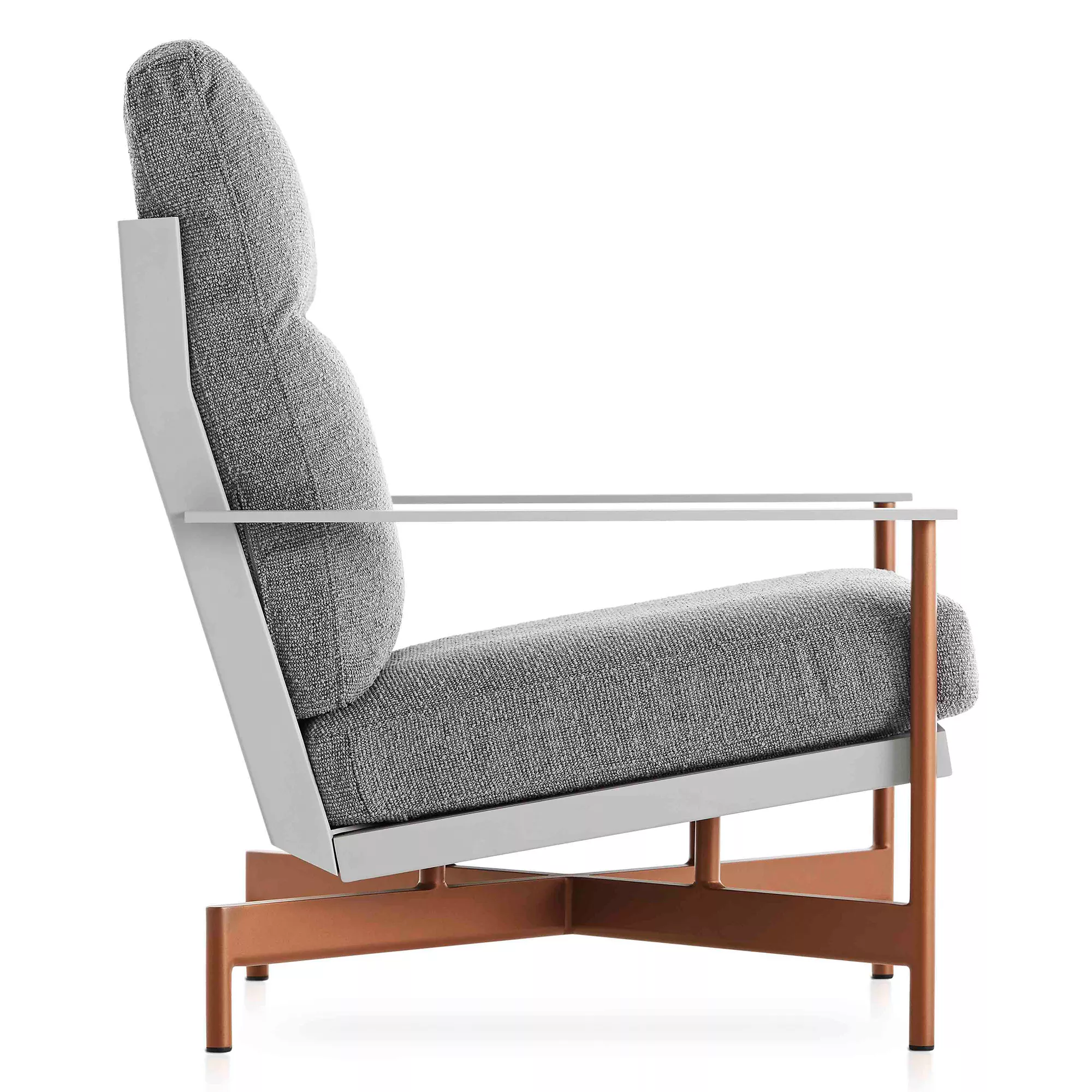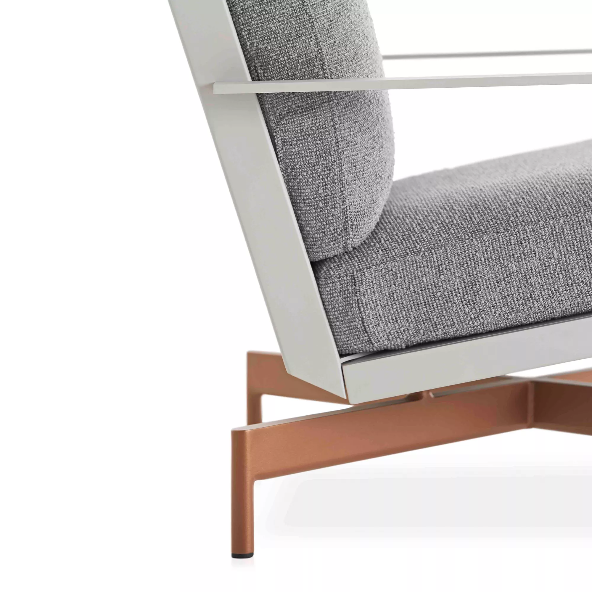 Hergestellt aus thermolackierten Aluminiumprofilen und Dekton®. Polyurethanschaum mit wasserabweisendem Stoff überzogen. Abziehbarer Bezug.