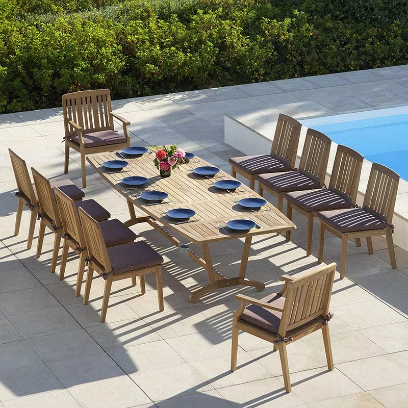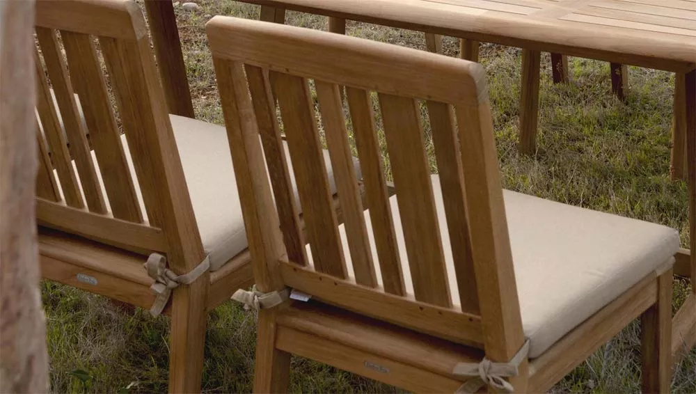 Chesapeake ist eine umfangreiche Gartenmöbel-Kollektion aus massivem Teakholz, die sowohl Essstühle und Gartensessel als auch eine Reihe von Esstischen rechteckig / rund und niedrigen Loungetischen enthält. Die Chesapeake Kollektion ist ein perfektes Beispiel der Verwendung von rustikalem Holz. Teakholz weist einen natürlichen hohen Ölgehalt auf, der ihm Stabilität und Widerstandskraft selbst gegen extreme Witterungseinflüsse verschafft. Zusammen mit dem hochwertigen Edelstahl die perfekte Kombination für Outdoor-Möbel.