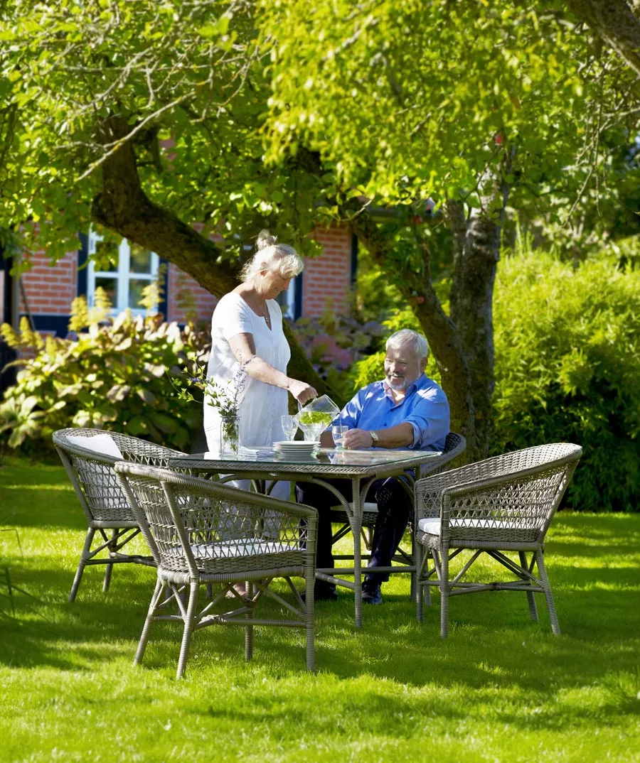 Sika Design Georgia Garden Katalog Georgia Garden Susy Beistelltisch Kaffeetisch mit einem handgeflochtenen Polyrattan Gestell Genießen Sie die Sonne auf Ihrer Terrasse mit einem Dawn Sessel und Susy Beistelltisch ... Das Regal unter dem Tisch bietet genügend Ablageplatz für die Zeitungen, Sonnencreme oder den Korb mit Pétanque-Kugeln. Das Polyrattan Geflecht der Dawn Kollektion besteht aus einem Kunststoff, dass absolut resistent gegen Witterungseinflüsse ist und im Laufe der Zeit farbbestängig bleibt. Es ist handgflochten und hat eine Oberfläche, die sich ganz gut anfühlt und sehr natürlich aussieht. Polyrattan Geflecht in der Farbe Antik Braun oder Weiß Weinlese, handgeflochten die Herstellung dieser hochwertigen Möbel erfolgt in erstklassiger Qualität UV-, witterungs- und farbbeständig leicht zu reinigen Maße: (B × T × H) 58 × 58 × 50 cm