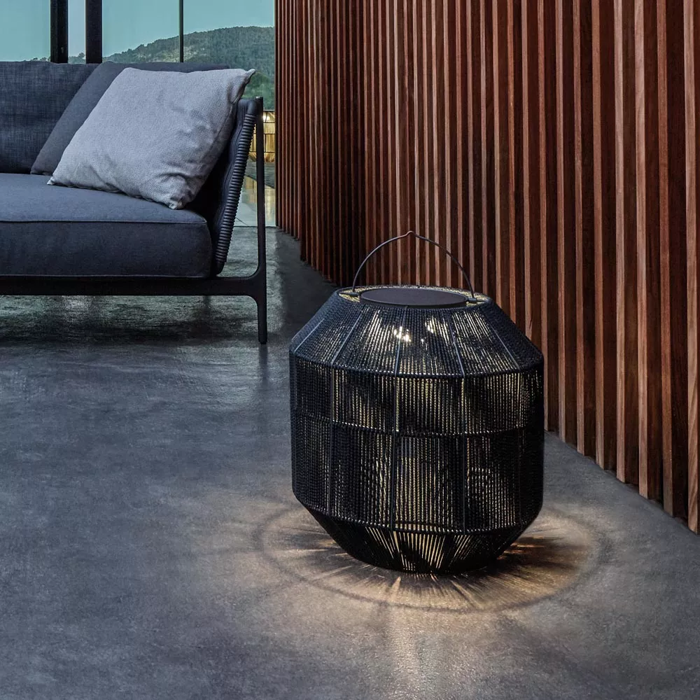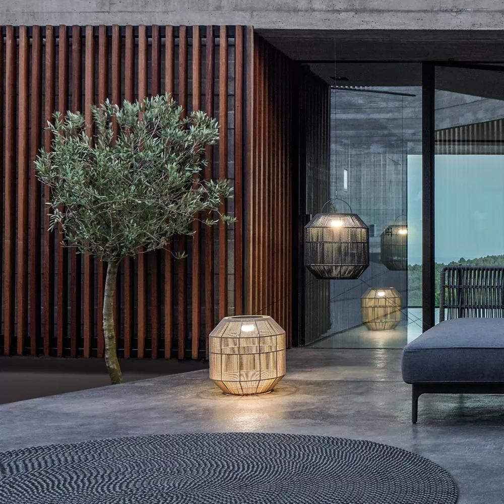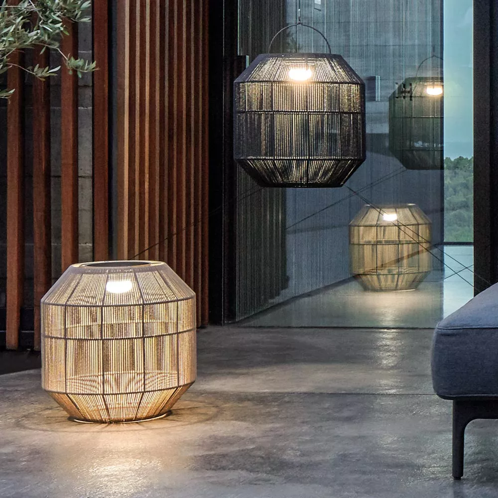 Gloster Gartenleuchte Ambient Lighting Nest (batterie- und solarbetrieben) mit Kunststoffgeflecht Fawn / Steel.