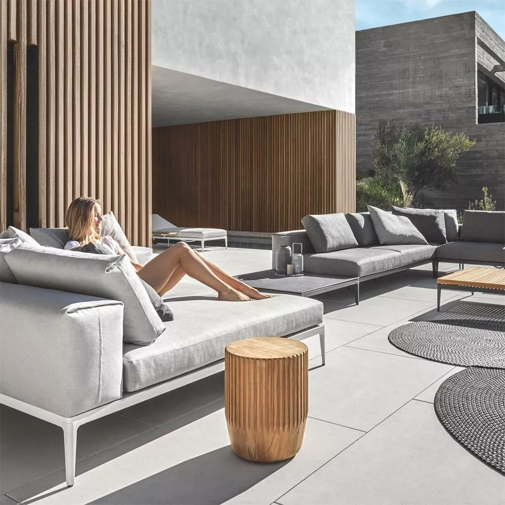 Arbor Beistelltisch von Gloster mit einem hochwertigen Teakholzgestell