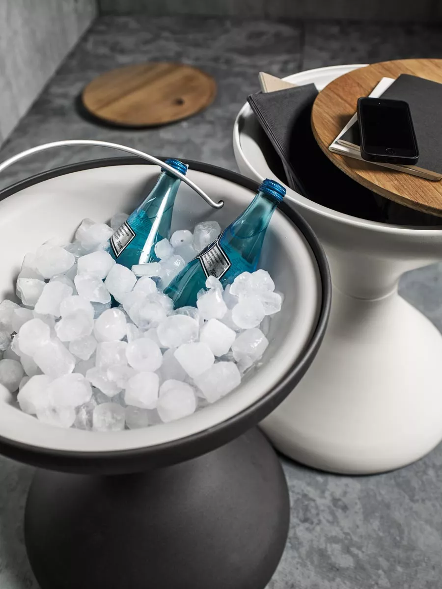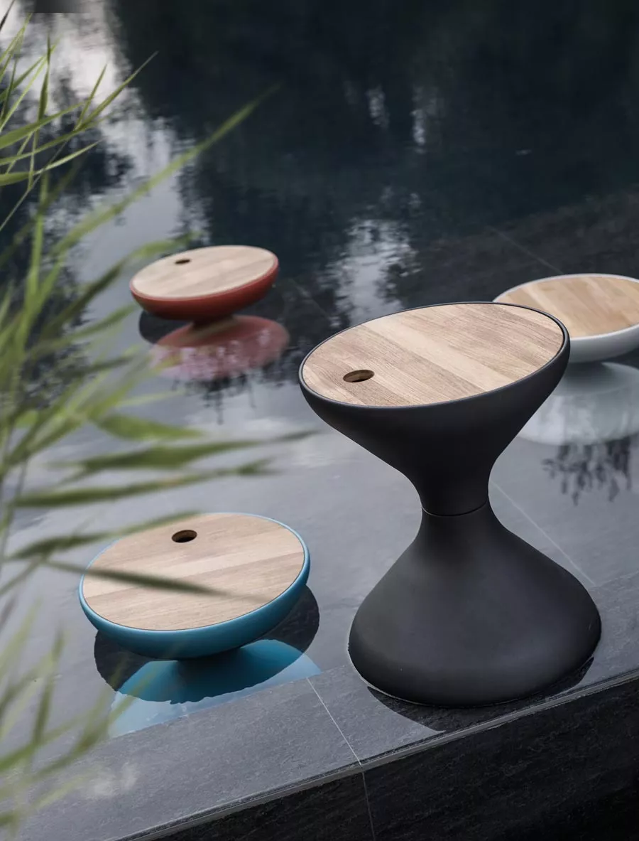 Die Inspiration ist fast zu offensichtlich – zwei glockenförmige Elemente zusammen ergeben die Form dieses kleinen Beistelltisches. Der organischen, fließenden Linien sind ein wunderbarer Hingucker für jeden Außenbereich.
