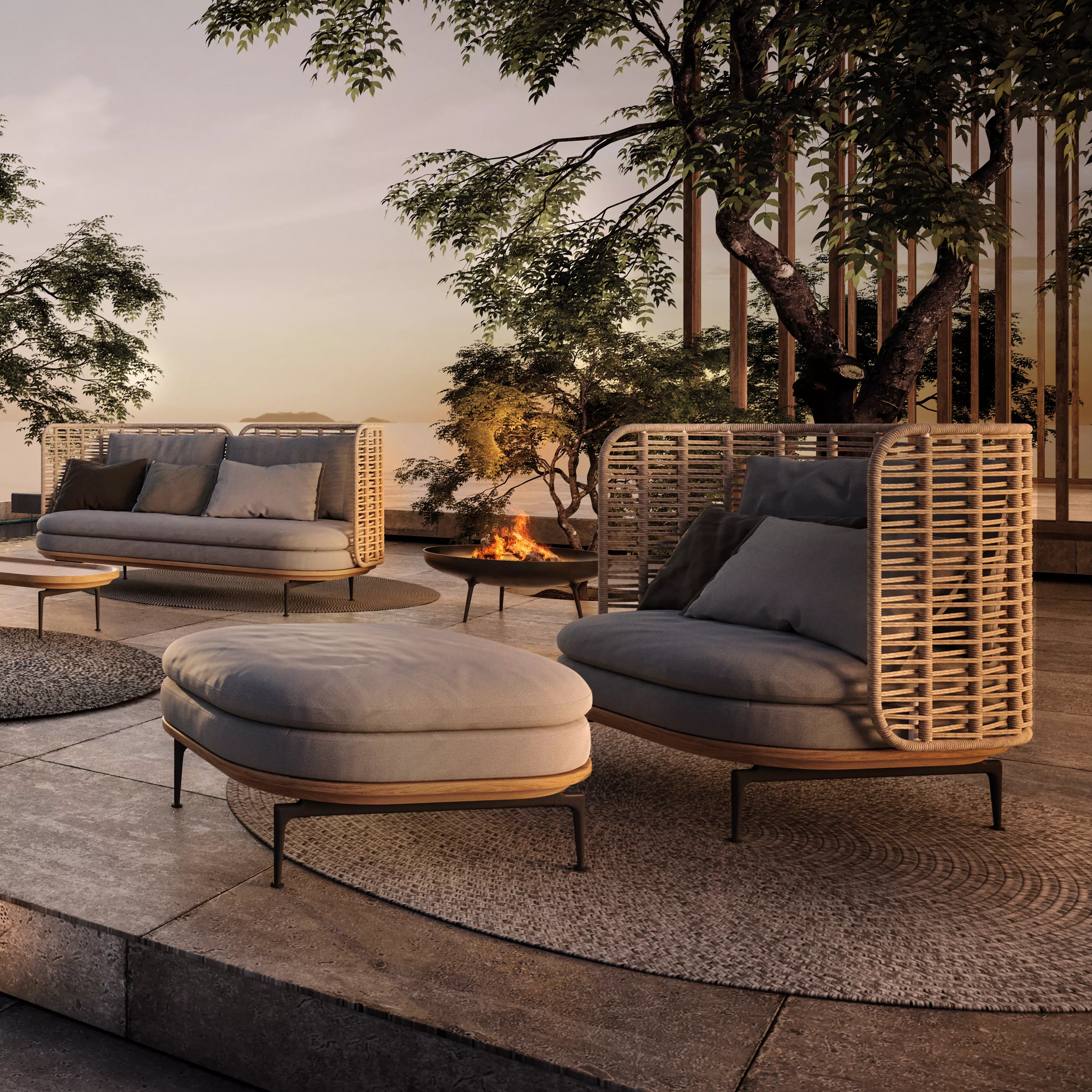 Die neue Kollektion von Henrik Perdersen macht mit ihren grazilen Füßen und der geflochtenen Rückwand eine elegante Figur. Der Koala-Farbene Stoff und die elegant dazu abgestimmten Kissen, machen die Mistral-Kollektion zu einem edlen Hingucker in Ihren Garten. Die Kollektion besteht aus einem 2-Sitzer Loungesofa, einem Fußhocker, einem Loungetisch und drei unterschiedlichen Daybeds. Die im Preis enthaltenen Dekokissen sind mit einer seitlichen Stoffnaht verziert. Wir empfehlen die Loungemöbel mit einer Schutzhülle vor Regen und anderen Wetterbedingungen zu schützen. Damit Sie noch länger was von diesen schönen Outdoor-Möbeln haben.