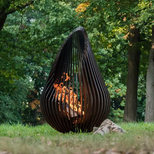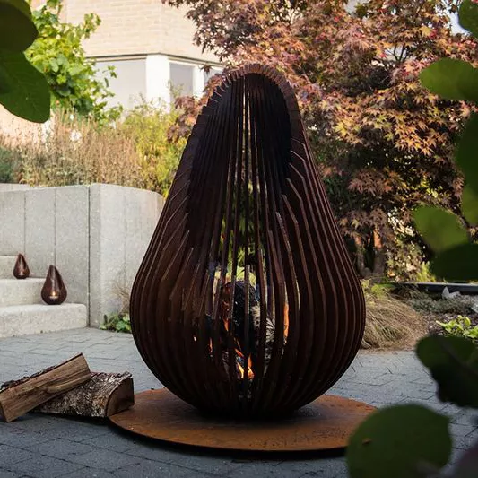 Die Glowbus® Feuerstellen Dewdrop M, L oder XL sind aus Cortenstahl gefertigt. Der spezielle Stahl bildet durch Bewitterung eine besonders dichte Sperrschicht auf der Oberfläche, die den Feuerkorb vor weiterer Korrosion schützt. Das macht Drewdrop besonders wetterbeständig und pflegeleicht.