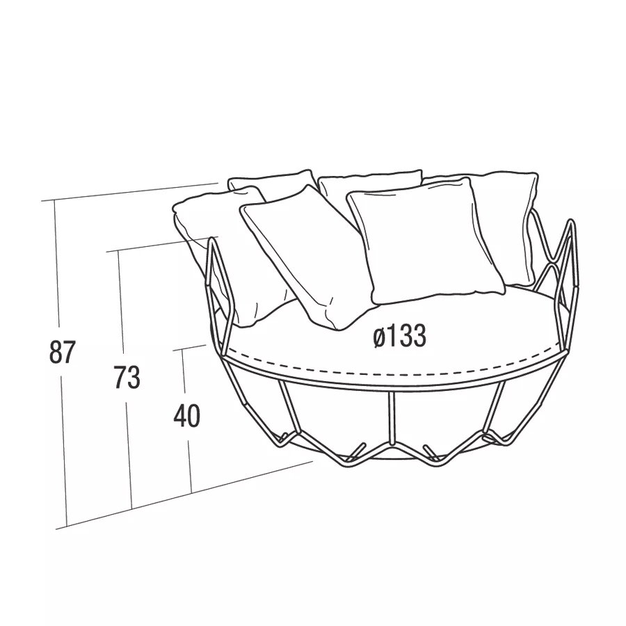 Roberti Gravity Outdoor Gartensofa Gravity Swing Sofa Ø 133 × 238 cm Hergestellt mit pulverbeschichtetem Edelstahlgestell. Perfekt geeignet für die Innen- und Außeneinrichtung von Wohn- und Objektprojekten Gravity ist ein gemütliches Outdoor Schaukelsofa mit bunten Kissen, verspielten Kombinationen von Farben und Designs, das perfekt als Terrassenmöbel und Gartenmöbel dient. Ohne Aufhängung Seile kann es sich auch in ein Luxussofa zur Entspannung verwandeln. Roberti ist ein hochwertiges und vielseitiges Vorschlagsensemble für die Einrichtung des Außenbereichs. Die Vielfalt der Kollektionen kann die fachliche Meisterschaft, das originelle Design und die perfekte Auswahl der Materialien bestens ausdrücken. Das Outdoor Leben wird somit eine freie, entspannende Lebenserfahrung, die man gern im Freundeskreis teilt. Elegantes Design der Gartenmöbel integriert sich harmonisch in Ihr Ambiente. Lassen Sie sich von Roberti Lifestyle inspirieren. Lounge Kollektion Gravity wird ausschließlich aus Edelstahl hergestellt, was in den leichten und fließenden Formen der Möbelstücke zum Ausdruck kommt. Die tragende Struktur besteht aus gebogenen Konstruktionen, während die Sitze geschwungene Formen aufweisen. Gravity ist eine subtile und elegante Outdoor-Möbelkollektion, die von architektonischem Charakter geprägt ist und zeitlose Schönheit und Harmonie ausstrahlt. Alle Teile der Kollektion integrieren sich optimal in jede Umgebung und trage dazu bei, dass wir das Leben im Freien mit Eleganz und Natürlichkeit genießen können, wo auch immer wir uns aufhalten. Die Roberti Lounge Kollektion Gravity ist aus jeder Perspektive ein Blickfang. Die stilsicheren Linien und elegante Lounge Atmosphäre passen perfekt in jeden Wohnraum und laden zur Gastlichkeit ein. Gestell: Edelstahl AISI 304 pulverbeschichtet Leicht zu reinigen Wetterfest Tragkraft 300 kg Maße: (Ø × SH/H) 133 × 60/238 cm