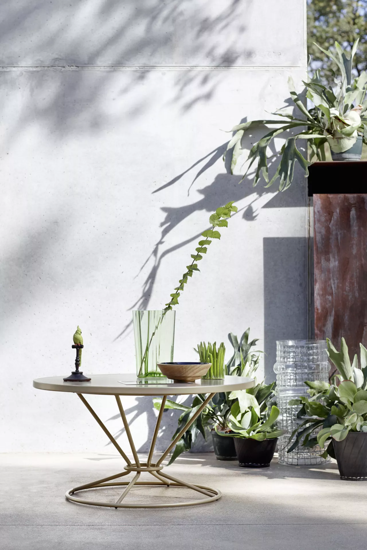 Roberti Gravity Outdoor Kaffeetisch Gravity Loungetisch Ø 80 × 42 cm Hergestellt mit pulverbeschichtetem Aluminiumgestell. Perfekt geeignet für die Innen- und Außeneinrichtung von Wohn- und Objektprojekten Gravity ist ein gemütliches Outdoor Schaukelsofa mit bunten Kissen, verspielten Kombinationen von Farben und Designs, das perfekt als Terrassenmöbel und Gartenmöbel dient. Ohne Aufhängung Seile kann es sich auch in ein Luxussofa zur Entspannung verwandeln. Roberti ist ein hochwertiges und vielseitiges Vorschlagsensemble für die Einrichtung des Außenbereichs. Die Vielfalt der Kollektionen kann die fachliche Meisterschaft, das originelle Design und die perfekte Auswahl der Materialien bestens ausdrücken. Das Outdoor Leben wird somit eine freie, entspannende Lebenserfahrung, die man gern im Freundeskreis teilt. Elegantes Design der Gartenmöbel integriert sich harmonisch in Ihr Ambiente. Lassen Sie sich von Roberti Lifestyle inspirieren. Lounge Kollektion Gravity wird ausschließlich aus Aluminium hergestellt, was in den leichten und fließenden Formen der Möbelstücke zum Ausdruck kommt. Die tragende Struktur besteht aus gebogenen Konstruktionen, während die Sitze geschwungene Formen aufweisen. Gravity ist eine subtile und elegante Outdoor-Möbelkollektion, die von architektonischem Charakter geprägt ist und zeitlose Schönheit und Harmonie ausstrahlt. Alle Teile der Kollektion integrieren sich optimal in jede Umgebung und trage dazu bei, dass wir das Leben im Freien mit Eleganz und Natürlichkeit genießen können, wo auch immer wir uns aufhalten. Die Roberti Lounge Kollektion Gravity ist aus jeder Perspektive ein Blickfang. Die stilsicheren Linien und elegante Lounge Atmosphäre passen perfekt in jeden Wohnraum und laden zur Gastlichkeit ein. Gestell: Aluminium Champagne pulverbeschichtet Leicht zu reinigen Wetterfest Loungetisch / Aluminium Tischplatte / Maße: (Ø × H) 80 × 42 cm Loungetisch / HPL Tischplatte / Maße: (Ø × H) 80 × 42 cm