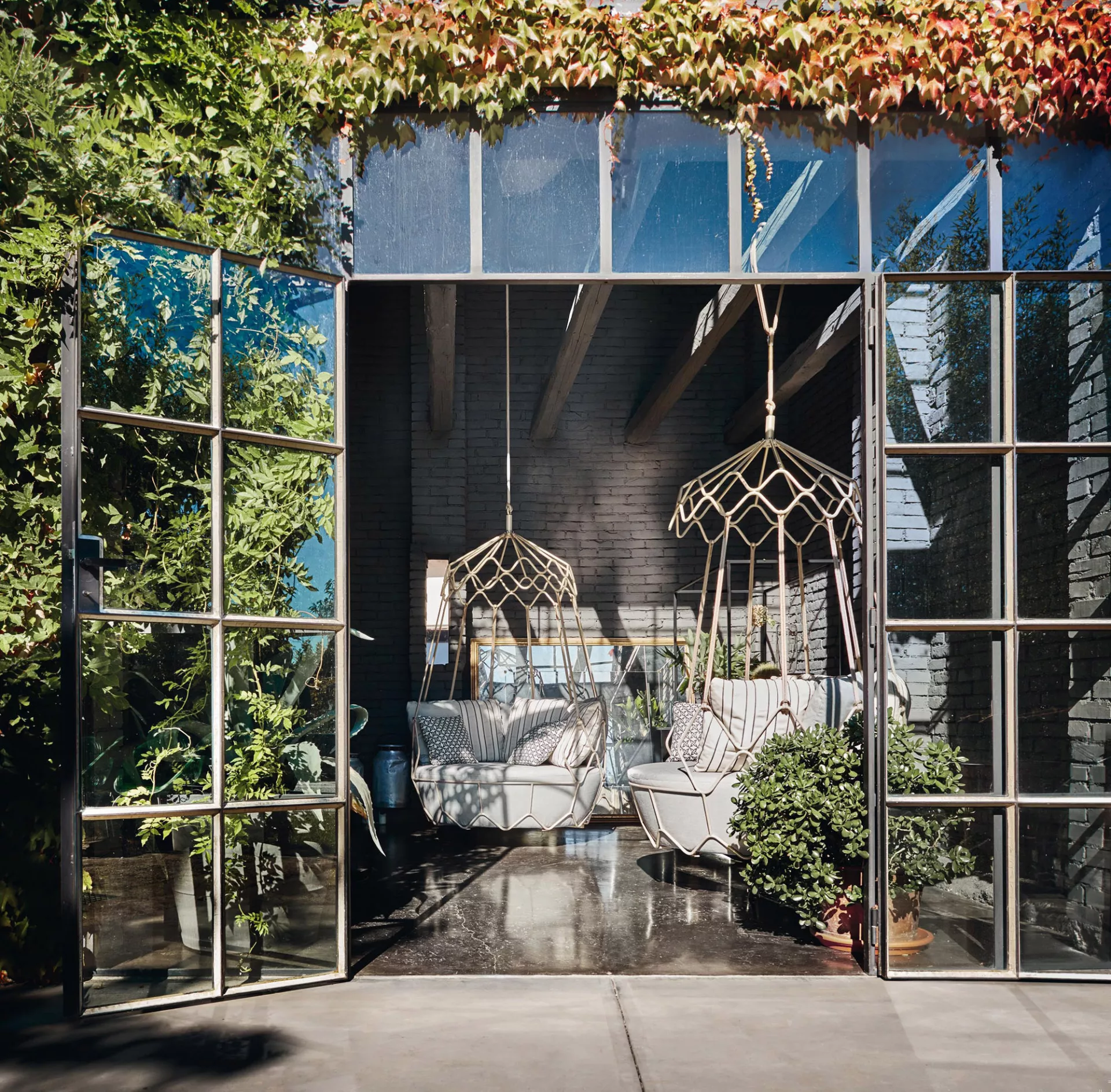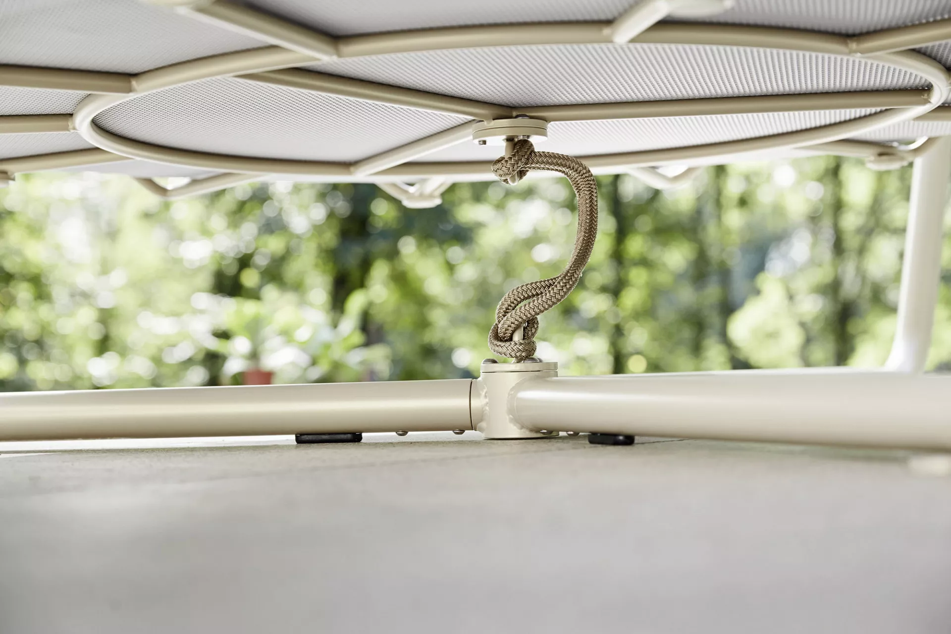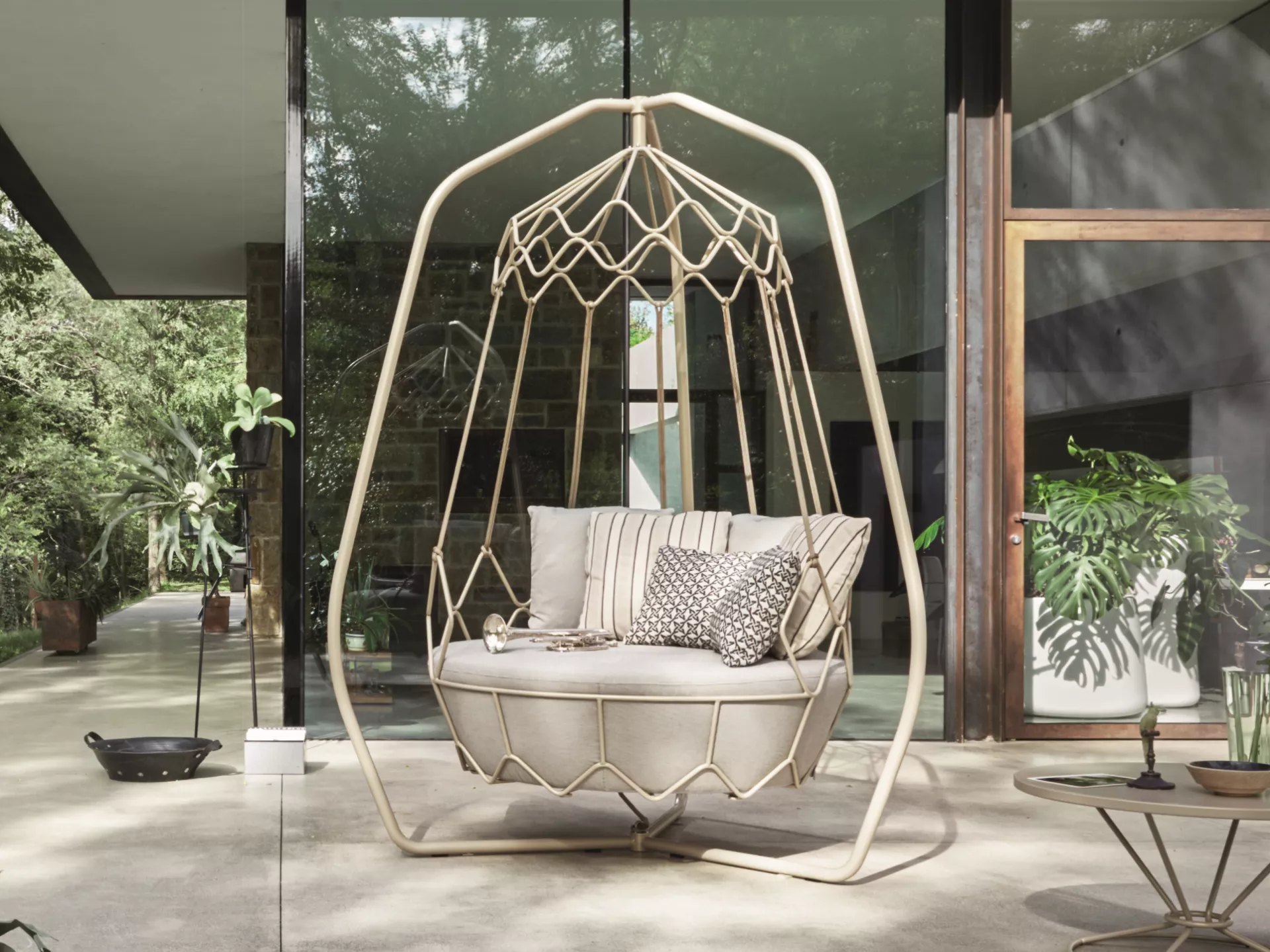 Hergestellt mit pulverbeschichtetem Edelstahlgestell. Perfekt geeignet für die Innen- und Außeneinrichtung von Wohn- und Objektprojekten