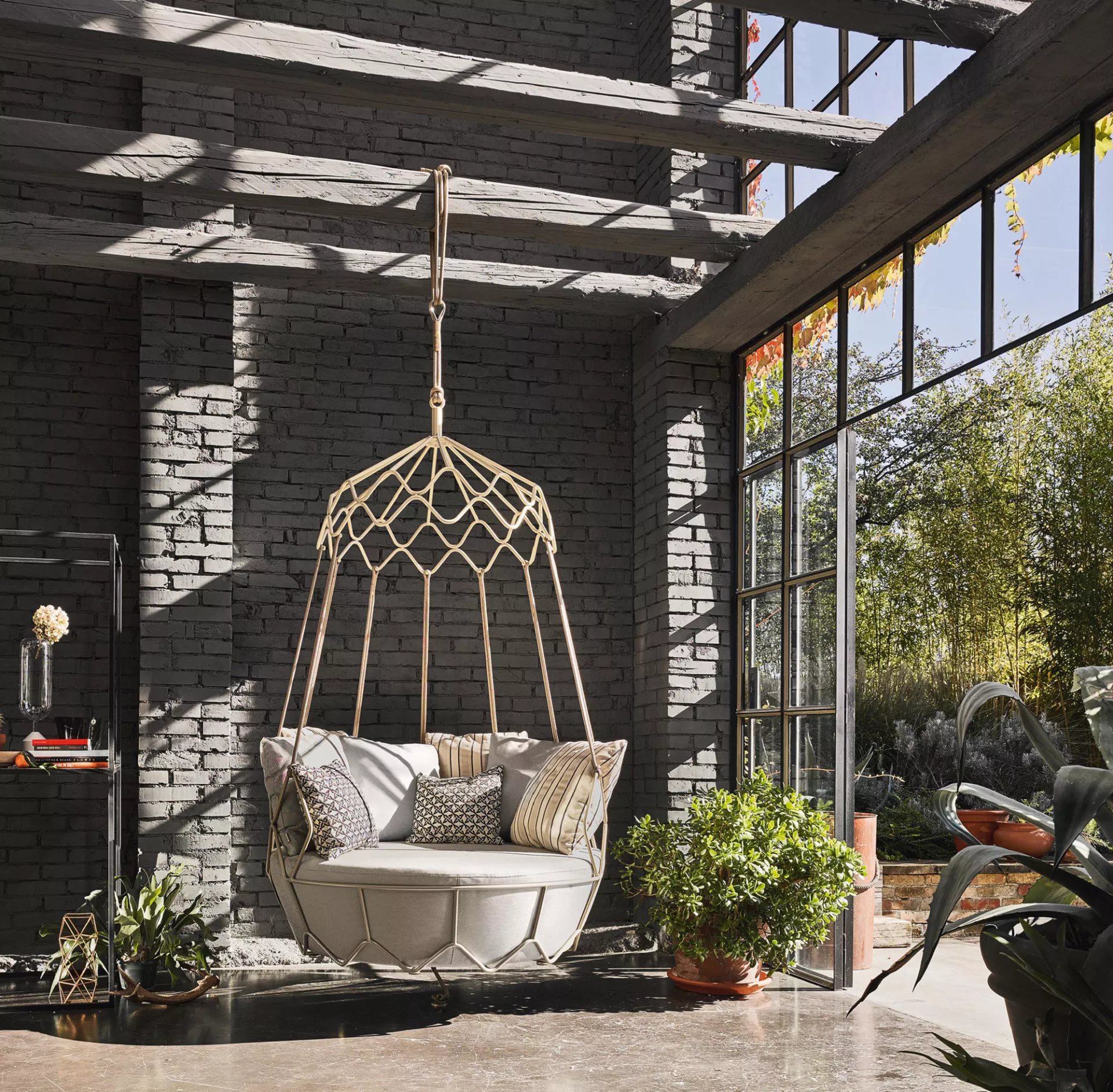 Hergestellt mit pulverbeschichtetem Edelstahlgestell. Perfekt geeignet für die Innen- und Außeneinrichtung von Wohn- und Objektprojekten