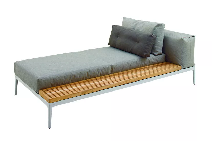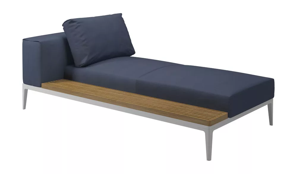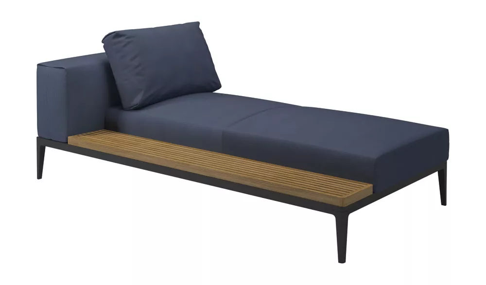 Gloster Grid Chaiselongue mit Teakholz Ablage | L+R