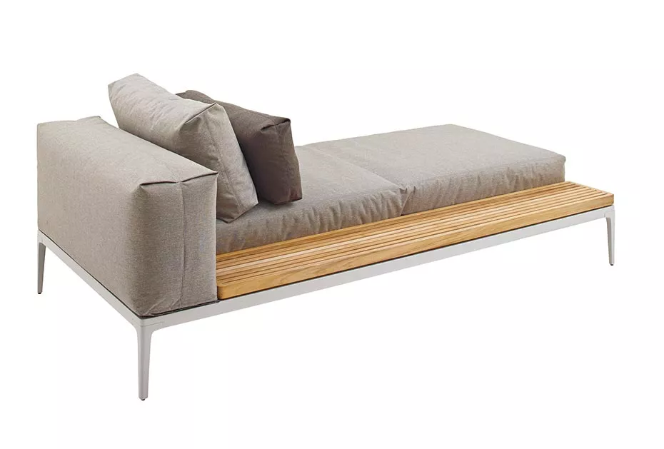 % 5.570,00 € (5.5% gespart)Produktinformationen "Gloster Grid Chaiselongue mit Teakholz Ablage | L+R"