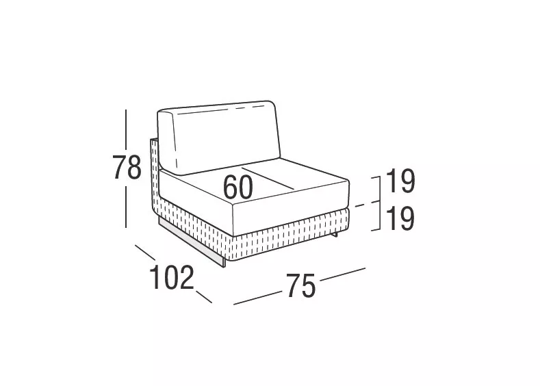 75 × 102 × 19/19 x 78cm