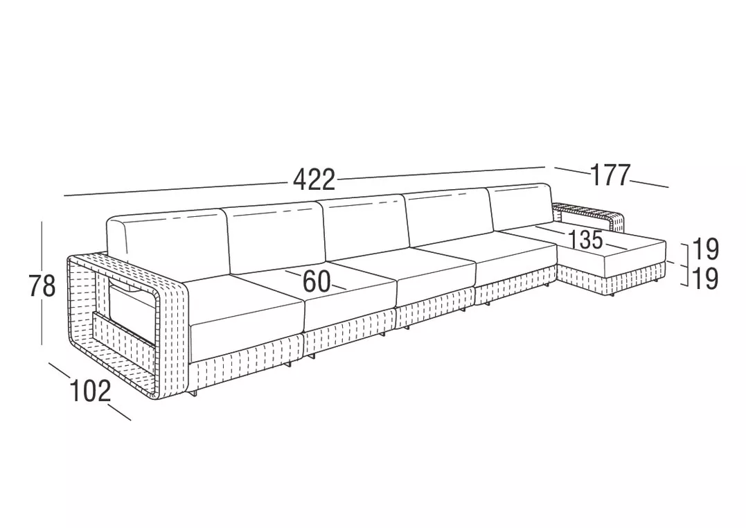 422 × 102/177 x 78 cm