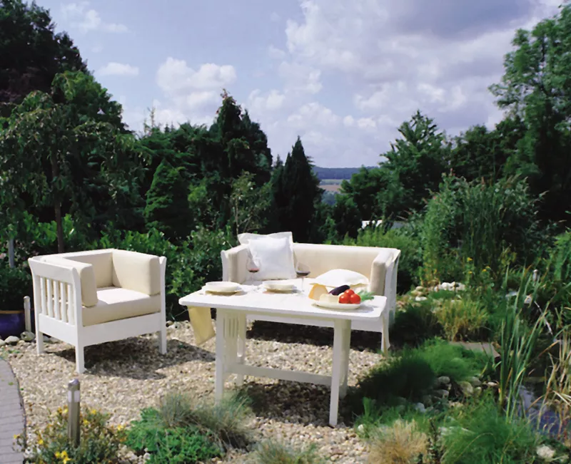 Frédéric ist eine Einladung der exklusiven Art, draußen Platz zu nehmen - wobei die Möbel mit ihrer tiefen Sitzfläche auch in großzügige Wintergärten oder in Wohnräume eine ausgesprochen gemütliche Atmosphäre zaubern.