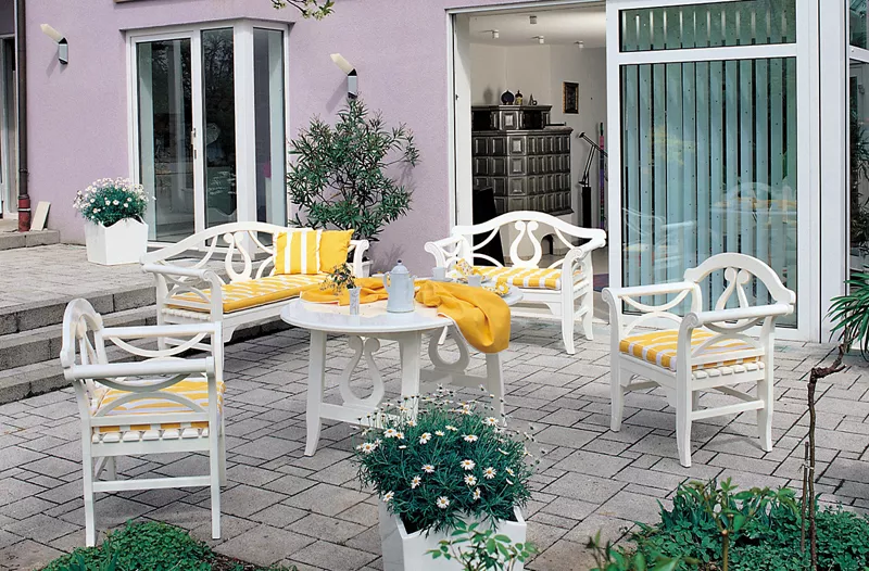 Herrenhaus Bank Michelle 2- oder 3-sitzigBank Michelle 2- oder 3-sitzig von Herrenhaus, komplett aus hochwertigstem afrikanischen Tola-Holz gefertigt. Das Holz des Tola-Baumes weist einen hohen Gehalt an Harzen und Ölen auf und ist damit hervorragend gegen Verwitterung gewappnet. Es hat eine sehr homogene Struktur und lässt sich gut verarbeiten. Das sind wichtige Faktoren, wenn man - wie bei Herrenhaus - noch traditionelle Techniken des Schreinerhandwerks einsetzt. Aus ökologischer Überzeugung verwendet Herrenhaus nur Holz aus Nutzholzbeständen, deren Wiederaufforstung sichergestellt ist. Auf Wunsch lieferbar mit passender Auflage in Ihrer Wunschfarbe. Massives Tola-Holz Weiß lackiert UV-beständig Maße (B × T × H) 120 × 60 × 93 cm Maße (B × T × H) 170 × 60 × 93 cm
