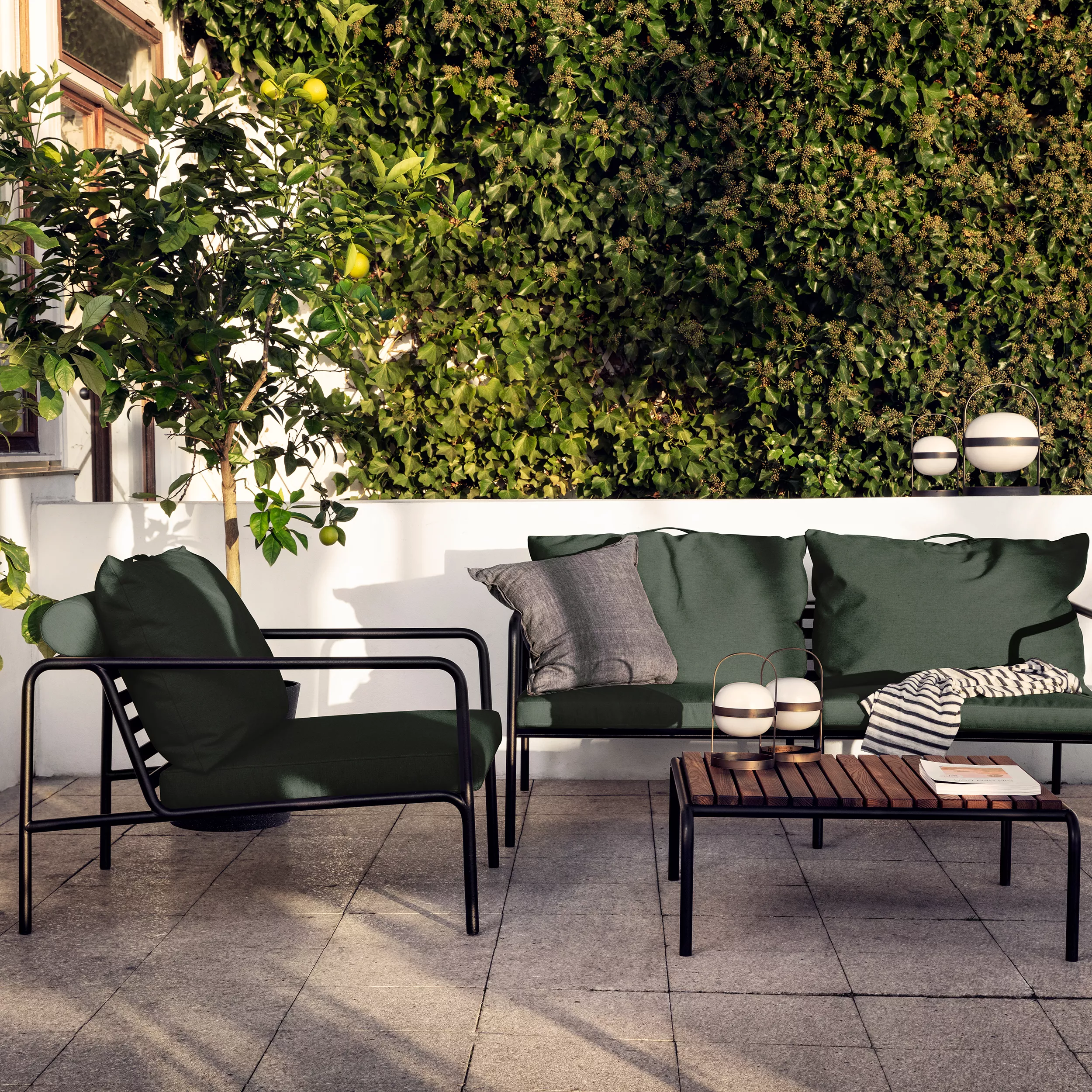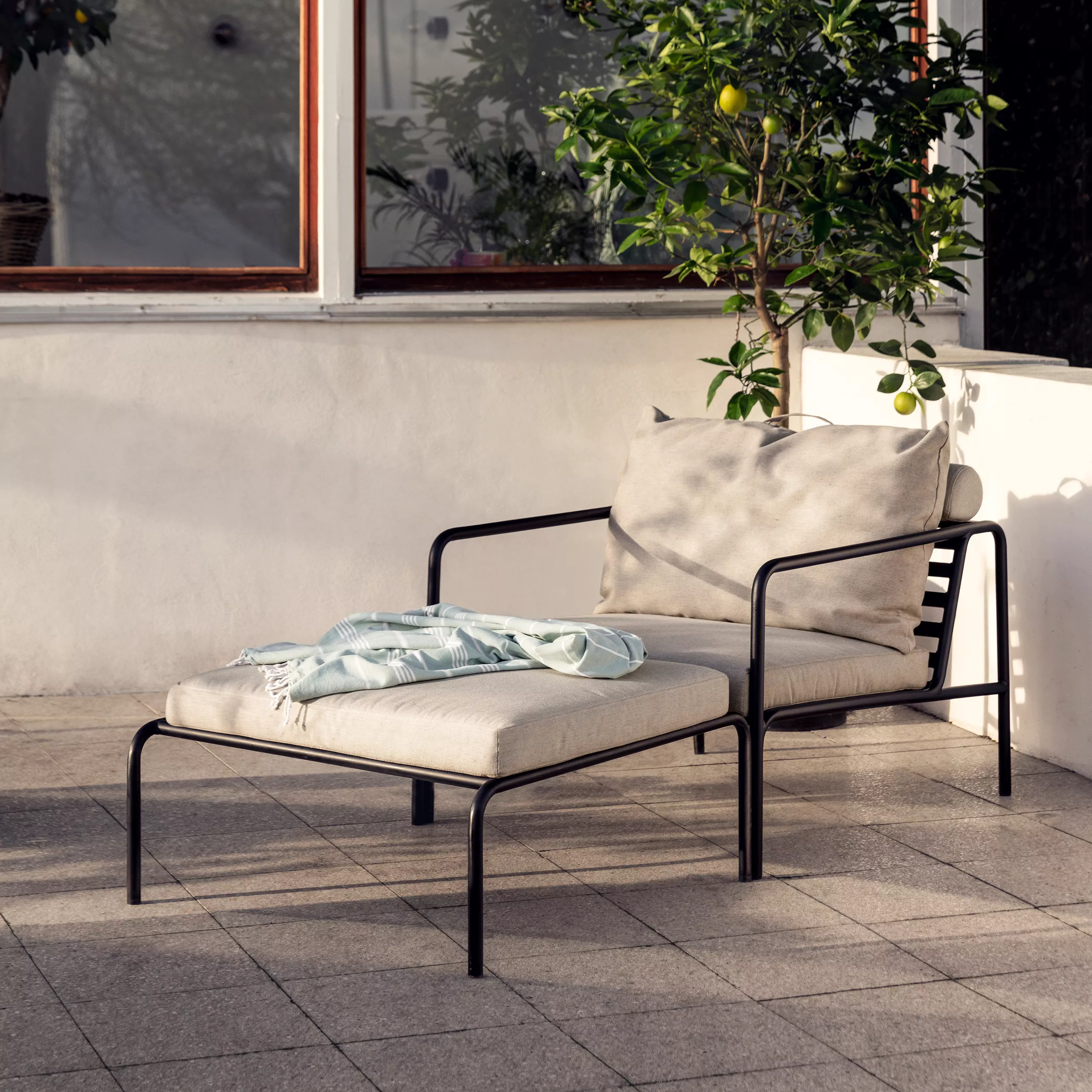 Die AVON-Kollektion wurde aus dem Wunsch heraus entwickelt, ein Gartenmöbel mit einem sehr leichten Erscheinungsbild und einem niedrigen, schlanken Profil zu schaffen und gleichzeitig ein hohes Maß an Komfort zu bieten. Das wartungsfreie Gestell und die Konstruktion der großen, weichen Rückenkissen ist genau das - die Einfachheit der Struktur, bei der niedrige Linien dafür sorgen, dass das Design immer stolz wirkt, sowohl mit als auch ohne Kissen - Sommer wie Winter. Die Griffe an den Kissen sind ein Statement für die Funktion des Produkts und machen es leicht zu greifen und bei Bedarf zu verstauen.