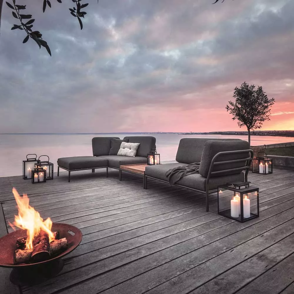 Die neue Outdoor Loungekollektion Houe Level, entworfen von dem Designer Henrik Pedersen, lässt sich vielfältig kombinieren und bildet aus modulierbaren Elementen eine hochwertige Loungegruppe auf Ihrer Terrasse oder im Garten. Das robuste Gestell der Level Kollektion besteht aus pulverbeschichtetem Aluminium, die Tischplatte ist aus Bambusholzlatten gefertigt und mit einem erhöhten Rand versehen. Wasser abweisende Kissen aus dunkelgrauem Stoff machen die Loungeecke besonders pflegeleicht und bequem. Die originelle und komfortable Level Gartenmöbel schafft eine leichte, lockere und dennoch hochwertige Atmosphäre. Die fließenden Übergänge der Loungemodule faszinieren durch eine organische, hochwertige Gestaltung. Der hervorragende Sitzkomfort macht die Loungegruppe schnell zum Liebling in Ihrem Garten.