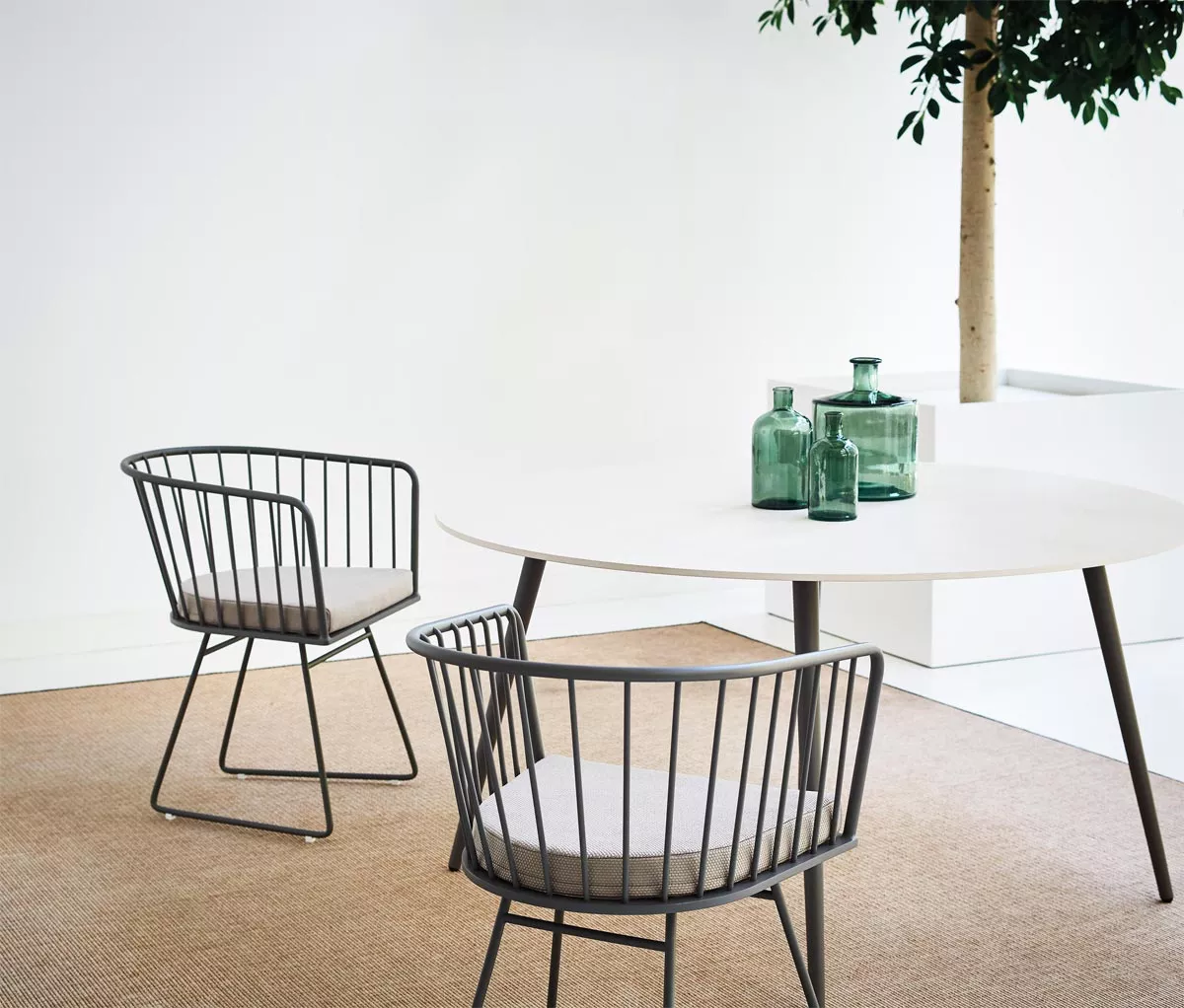 Bivaq Illa ist eine moderne Gartenmöbelkollektion entwickelt von dem Designer Andrés Bluth, die an die klassischen Werte von Outdoormöbeln erinnert: Langlebigkeit, Komfort und minimale Wartung. Diese Kollektion entstand aus der Idee, eine Kollektion von weicheren und einhüllenden Möbeln zu schaffen. Basierend auf der Essenz der traditionellen Gartenmöbel, werden Stangen und runde Rohre verwendet, um glatte, fließende Formen zu bilden. Die Elemente, aus denen diese Kollektion besteht, sind: Gartenstühle, niedrige Tische, Esstische und ein brandneues Konzept in Bivaq Portfolio, eine Feuerstelle. Bivaq Illa ist für den Außenbereich sehr gut geeignet. Alle verwendeten Materialien (Gestelle, Stoffe, Decken) sind für den Einsatz im Freien konzipiert und sind witterungs- und UV-beständig. Die Kollektion Illa ist vielseitig, anpassungsfähig und bietet verschiedene Modelle für das öffentliche oder private Umfeld.