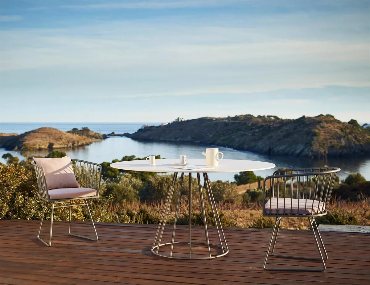 Bivaq Illa ist eine moderne Gartenmöbelkollektion entwickelt von dem Designer Andrés Bluth, die an die klassischen Werte von Outdoormöbeln erinnert: Langlebigkeit, Komfort und minimale Wartung. Diese Kollektion entstand aus der Idee, eine Kollektion von weicheren und einhüllenden Möbeln zu schaffen. Basierend auf der Essenz der traditionellen Gartenmöbel, werden Stangen und runde Rohre verwendet, um glatte, fließende Formen zu bilden. Die Elemente, aus denen diese Kollektion besteht, sind: Gartenstühle, niedrige Tische, Esstische und ein brandneues Konzept in Bivaq Portfolio, eine Feuerstelle. Bivaq Illa ist für den Außenbereich sehr gut geeignet. Alle verwendeten Materialien (Gestelle, Stoffe, Decken) sind für den Einsatz im Freien konzipiert und sind witterungs- und UV-beständig. Die Kollektion Illa ist vielseitig, anpassungsfähig und bietet verschiedene Modelle für das öffentliche oder private Umfeld.