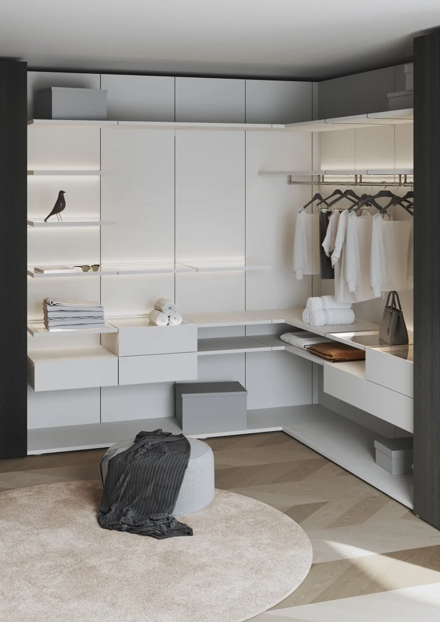 Das Schranksystem collect plus von interlübke bietet eine Vielzahl frei gestaltbarer Schränke, Garderoben, Ankleiden, Raumteiler und Vitrinen. Die vielseitigen Planungsmöglichkeiten eröffnen gestalterische Freiräume. Beleuchtung mit SmartHome-Steuerung, geschlossene oder offene Fronten können nach Wunsch ergänzt werden. Hinzu kommen verschiedene Griffe oder auch die Möglichkeit, Ihren Schrank mit der Push-to-open-Technik auszustatten. Runden Sie das Ganze mit der Auswahl verschiedener Farben und Materialien ab. Freuen Sie sich auf Ihr ganz persönliches Designstück von interlübke.Haben Sie Fragen oder bereits eine konkrete Vorstellung? Dann kontaktieren Sie uns über den Button Anfrage.