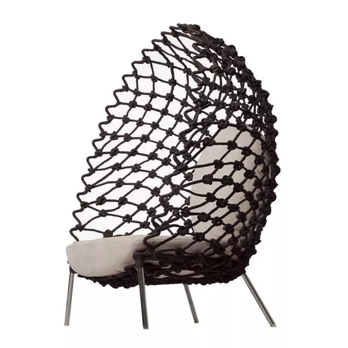 Inspiriert von Fischernetzen und aus Stoff, der um ein Stahlgestell gewickelt und gewickelt ist, umgibt Sie der Dragnet Lounge Chair wie ein Kokon. Kenneth Cobonpue Dragnet ist eine moderne Kollektion, die sich perfekt für Innen- und Außenbereiche eignet. Die moderne Form des Sessels macht sie ideal zum Zurücklehnen. Der von Federica Capitani entworfene dünne, mit Kunststoffgeflecht bezogene Stahlrahmen unterstreicht das moderne Design der Forma. Das Synthetikgeflecht ist besonders widerstandsfähig gegenüber Hitze, Regen, Eis, Schnee und UV-Strahlung.