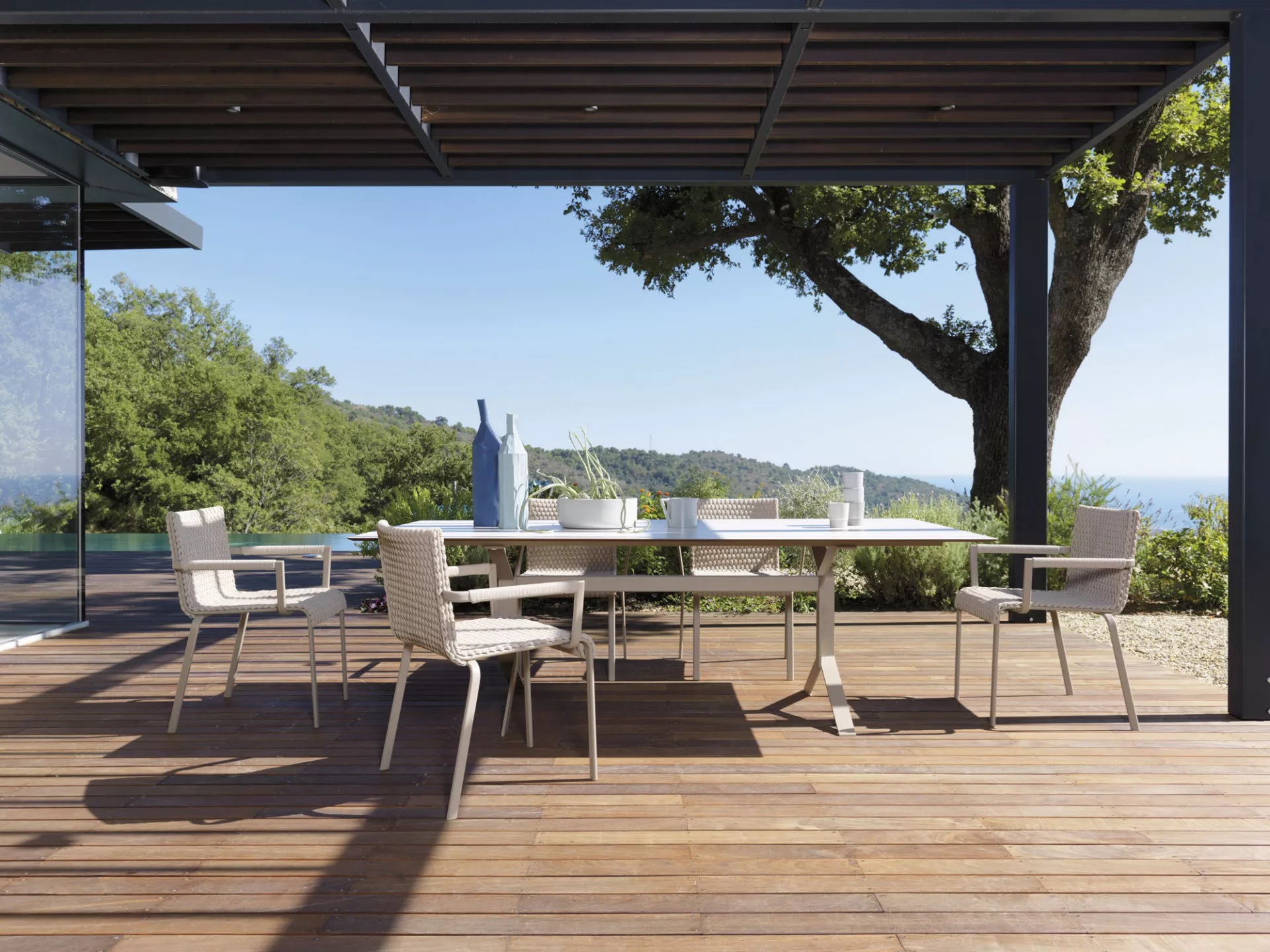 Key West ist eine elegante Outdoor-Möbelkollektion, die von architektonischem Charakter geprägt ist und zeitlose Schönheit und Harmonie ausstrahlt. Alle Teile der Kollektion integrieren sich optimal in jede Umgebung und tragen dazu bei, dass wir das Leben im Freien mit Eleganz und Natürlichkeit genießen können, wo auch immer wir uns aufhalten.