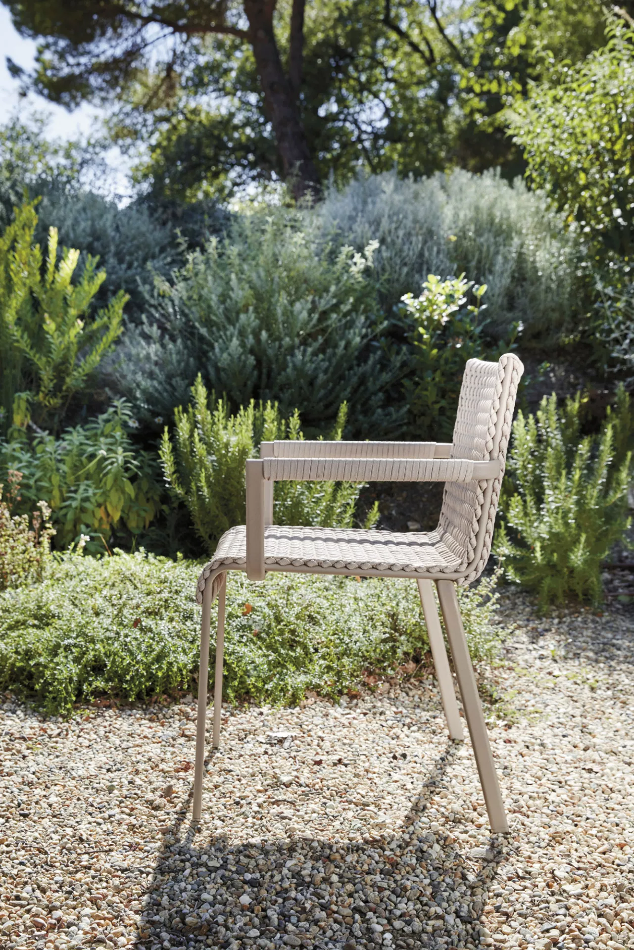 Roberti Key West Outdoor Armlehnstuhl / Gartenstuhl 54 cm Hergestellt mit pulverbeschichtetem Aluminiumgestell, bespannt mit Sunrope Kunststoffgeflecht. Wertvolle Materialien und moderne Silhouetten machen diese Kollektion einzigartig und luxuriös. Der gemütliche Sitz sorgt für den vollkommenen Komfort, die dynamischen Formen erlauben es, mit den umgebenden Räumen zu spielen und sie zu ergänzen. Alle Key West Möbelstücke sind modular aufgebaut. Perfekt geeignet für die Innen- und Außeneinrichtung von Wohn- und Objektprojekten Die Key West Kollektion bietet unbegrenzte Lösungen für die Gestaltung und Ausstattung Ihrer Terrasse mit Gartenmöbel, die Schaffung von verschiedenen Outdoor Loungegruppen, Treffpunkten, die unabhängig voneinander oder mit Irokoholzbalken verbunden sind. Die massiven Doppelbalken sind mit speziellen Füßen versehen, um sie vom Boden abgehoben zu halten, einen langen Kontakt mit Wasser zu vermeiden und die Qualität zu schützen. Die wärmebehandelten Irokoholzdoppelbalken sind eine exklusive und vielseitige Ergänzung der Kollektion und können als Trennwand zwischen zwei großen Außenbereichen oder als Basis für Sofas und Relaxbereiche, bzw. als Bänke verwendet werden. Die verschiedenen Elemente können leicht und schnell montiert, entfernt, getrennt und wieder, unbegrenzt kombiniert, eingefügt werden. Key West - eine ideale Konstruktion, die interessanten Möglichkeiten bietet die Räume zu strukturieren und sie mit den verschiedenen Modulen zu kombinieren. Sitzmöbel mit Aluminiumgestell pulverbeschichtet, bespannt mit Sunrope cipria Kunststoffgeflecht zeichnet Eleganz und Schlichtheit der Formen aus. Die stapelbaren Stühle eignen sich perfekt für die Objektausstattung, sie sind praktisch, bequem und robust. Das Key West Design strahlt eine unverwechselbare Eleganz, einen Ausdruck der Freude am Leben in einem komfortablen und glamourösen Raum aus, verleiht Ihrem Garten eine unverwechselbare, persönliche Note. Key West ist eine elegante Outdoor-Möbelkollektion, die von architektonischem Charakter geprägt ist und zeitlose Schönheit und Harmonie ausstrahlt. Alle Teile der Kollektion integrieren sich optimal in jede Umgebung und tragen dazu bei, dass wir das Leben im Freien mit Eleganz und Natürlichkeit genießen können, wo auch immer wir uns aufhalten. Die Roberti Lounge Kollektion Key West ist aus jeder Perspektive ein Blickfang. Die stilsicheren Linien und elegante Lounge Atmosphäre passen perfekt in jeden Wohnraum und laden zur Gastlichkeit ein. Gestell: Aluminium pulverbeschichtet Geflecht: Sunrope Leicht zu reinigen Stapelbar Wetterfest Maße: (B × T × H) 54 × 59 × 81 cm
