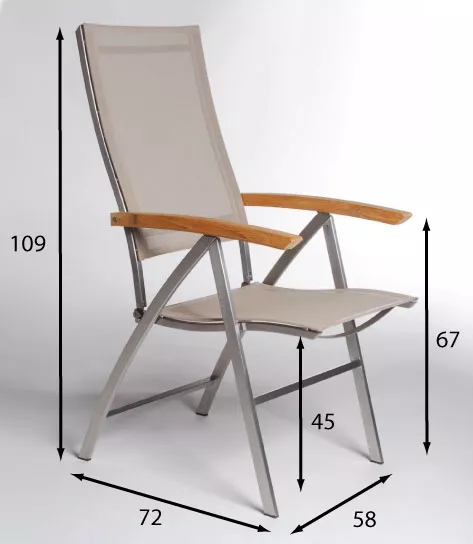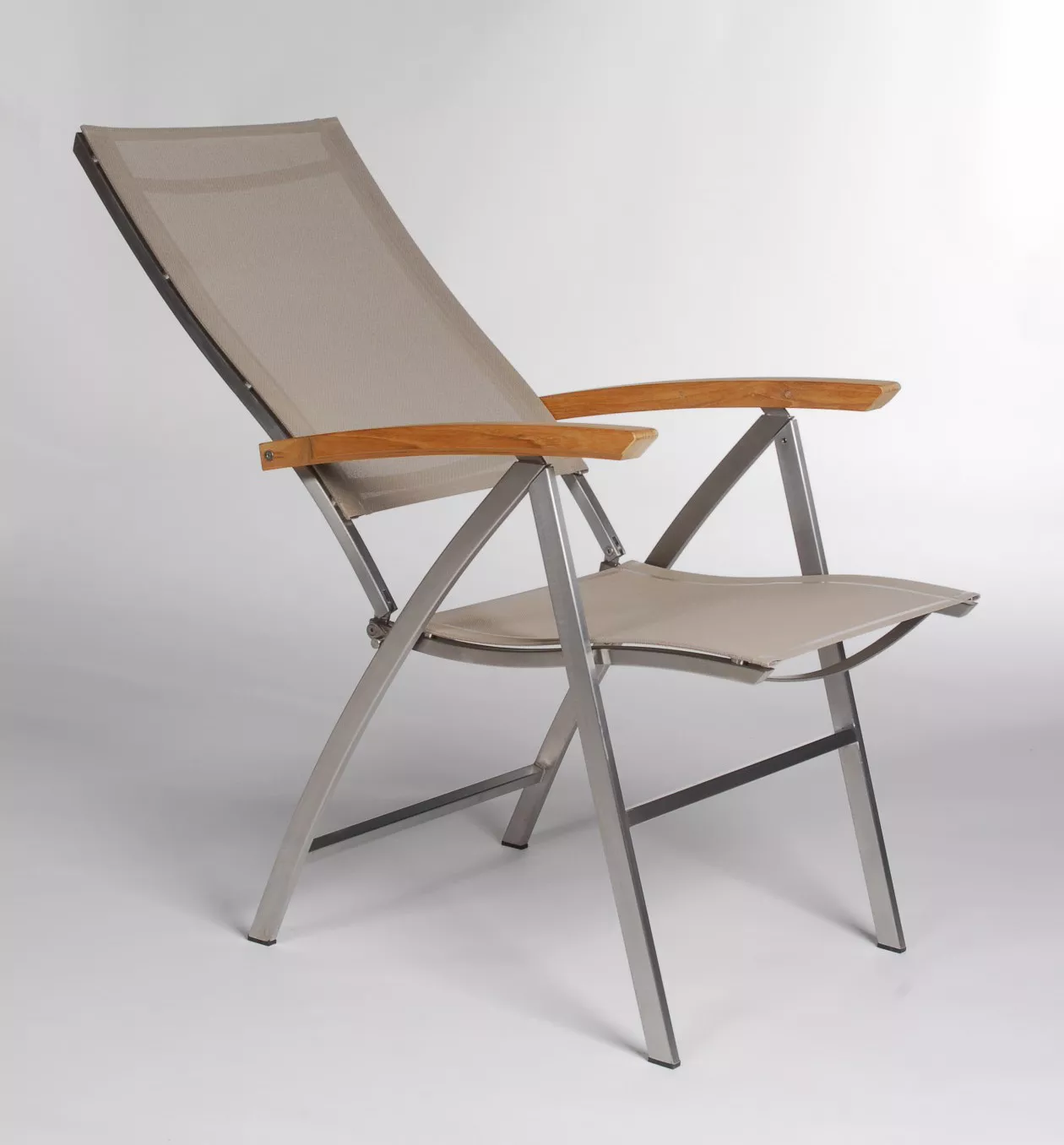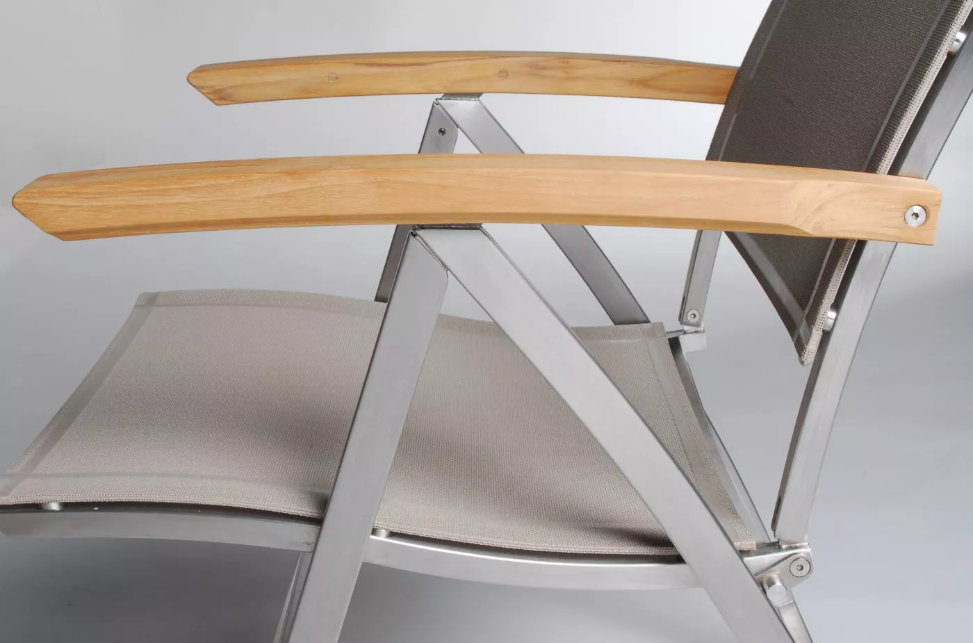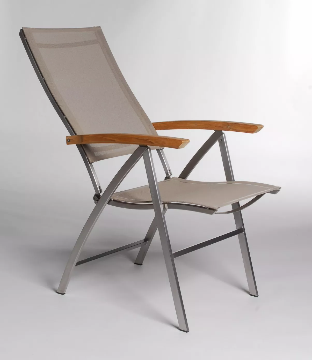 Klappbarer Hochlehner Casino mit Batyline®-Canatex Synthetikgewebe und Gestell aus Edelstahl.