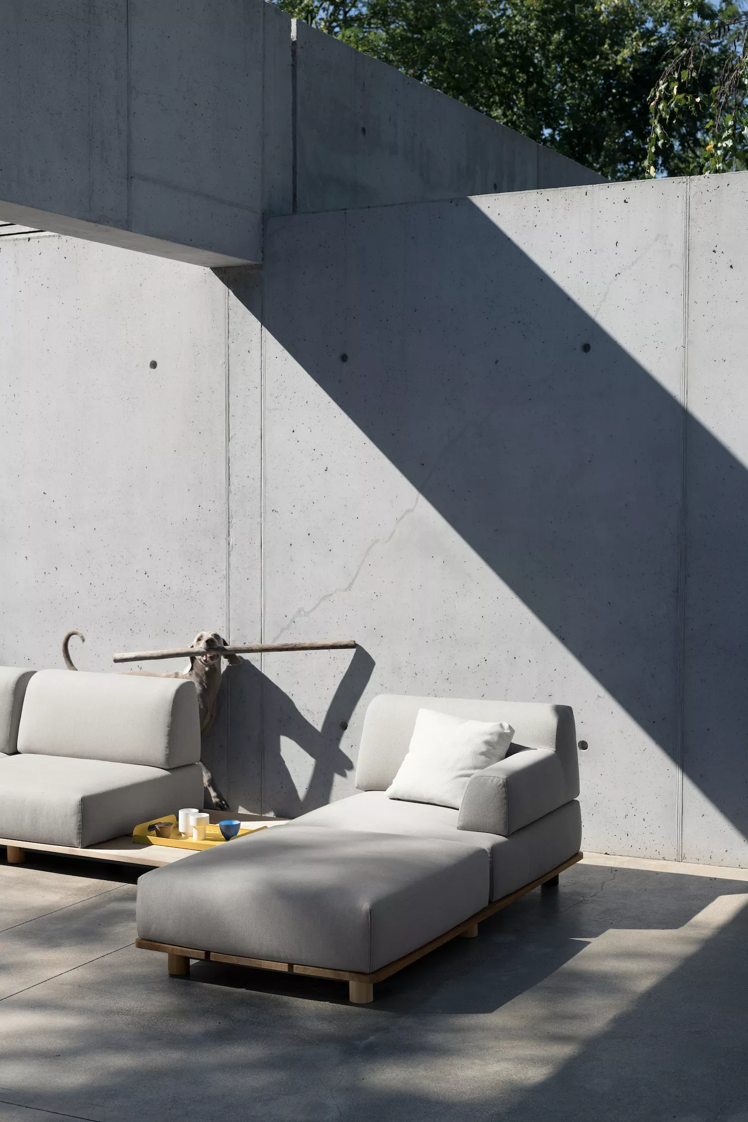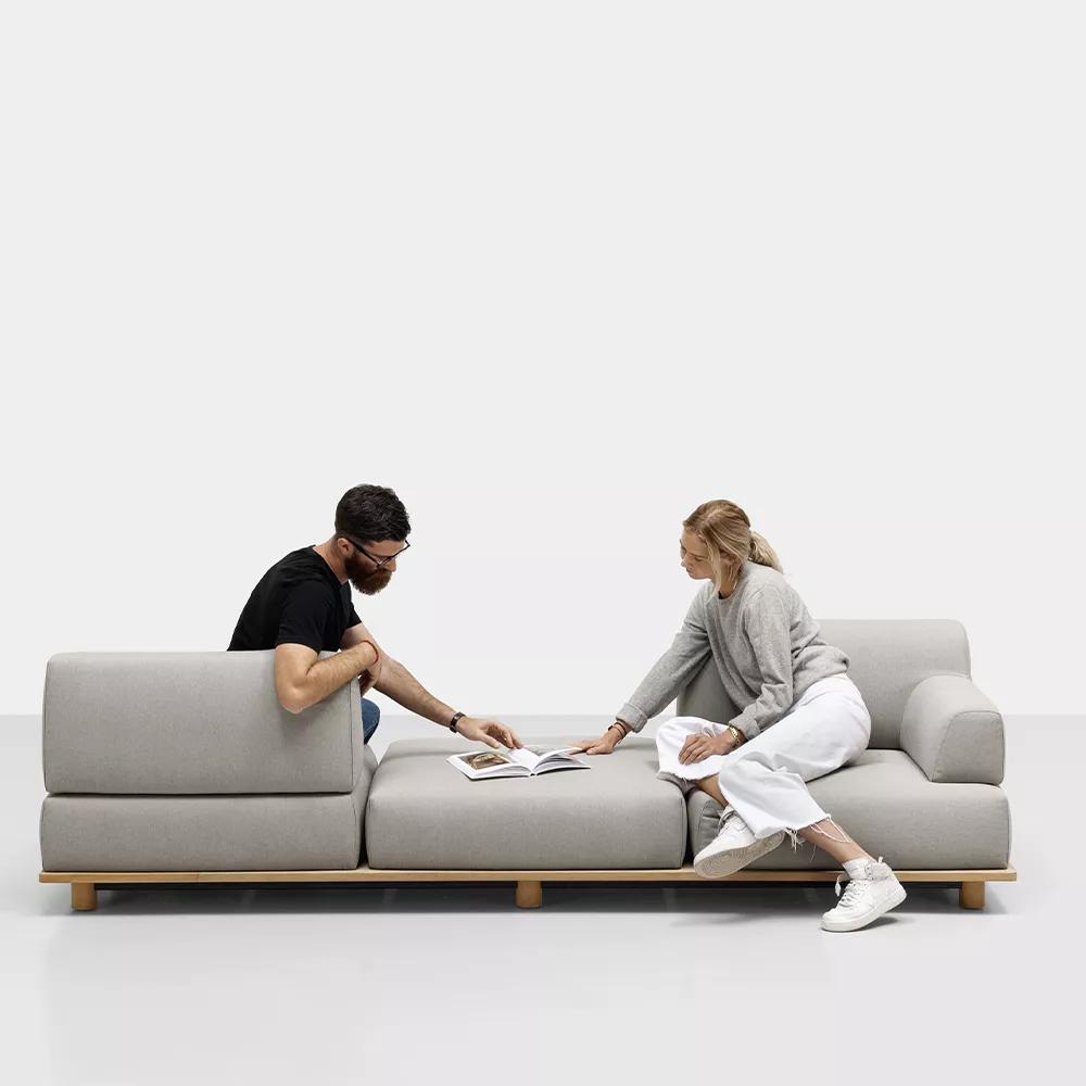 Sam Hecht und Kim Colin, die Gründer des Londoner Unternehmens Industrial Facility, sind international für die Schönheit und Anmut ihrer Entwürfe bekannt, die fast immer aus den gewöhnlichsten Alltagsgegenständen bestehen. Für Kristalia entwarfen sie Palco, ein Sitzsystem für den Außenbereich, das von Paletten, Lattentischen und klassischen Terrassendielen inspiriert ist. Palco besteht aus einem Lattenrost aus Teakholz oder Aluminium mit einem Metallgestell und einem oder mehreren gepolsterten Elementen, die zu verschiedenen Konfigurationen kombiniert werden können, die sich auch nach dem Kauf noch verändern lassen. Die Plattform kann vollständig mit den gepolsterten Elementen bedeckt werden oder als niedriger Tisch dienen, auf dem eine Lampe, ein Buch oder ein Cocktail platziert werden kann. Kristalia empfiehlt für Palco den idealen Standort auf überdachten und halbüberdachten Veranden und Terrassen.