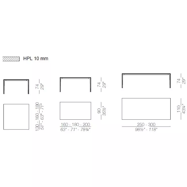 Das Element besteht aus einem Rahmen aus extrudiertem Aluminium, der sich nahtlos in die Beine aus druckgegossenem Aluminium einfügt.