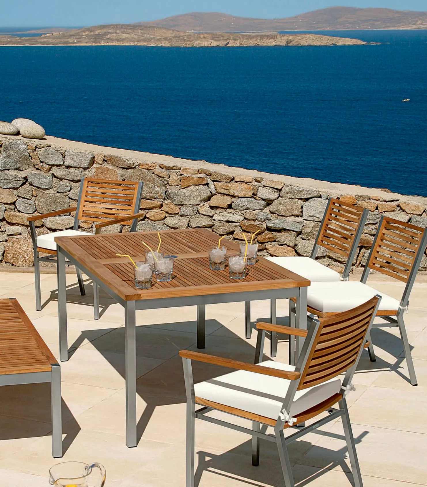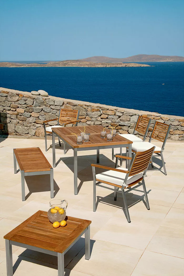 Teakholz weist einen natürlichen hohen Ölgehalt auf, der ihm Stabilität und Widerstandskraft selbst gegen extreme Witterungseinflüsse verschafft. Zusammen mit dem hochwertigen Edelstahl die perfekte Kombination für Outdoor-Möbel.