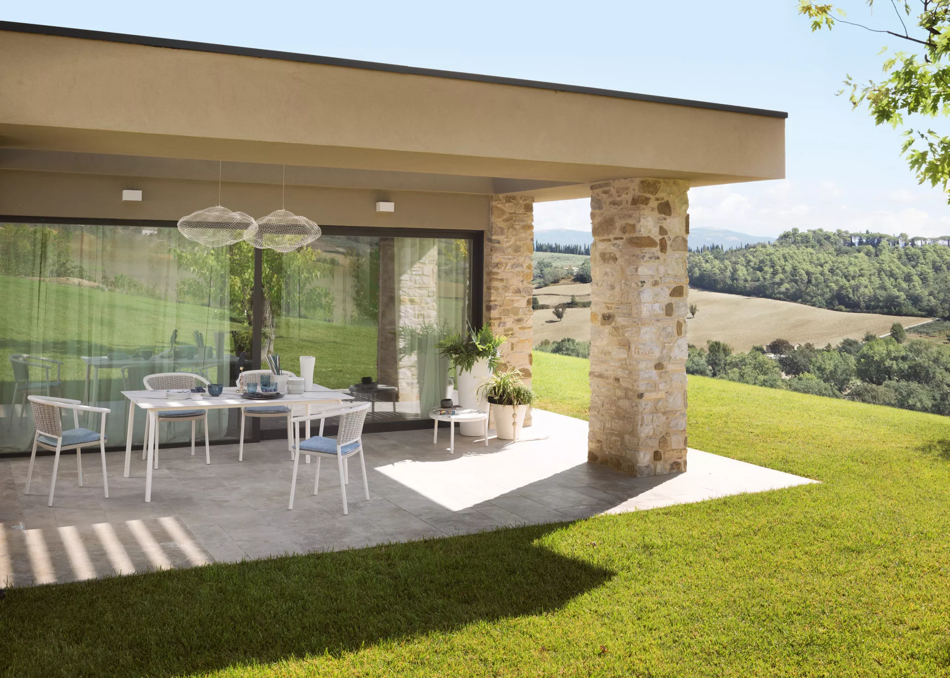 Die Schönheit der Seetangwebereien, die nüchterne Eleganz der Formen: Lipari wird in der weißen Version hergestellt, für eine Helligkeit, die an das Leben unter freiem Himmel erinnert, und in der neuesten Graphitfarbe, die den Charme verstärkt und die Gartenmöbel perfekt für den Innenbereich geeignet macht.
