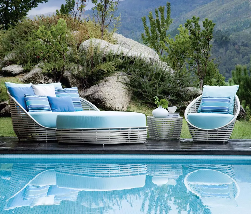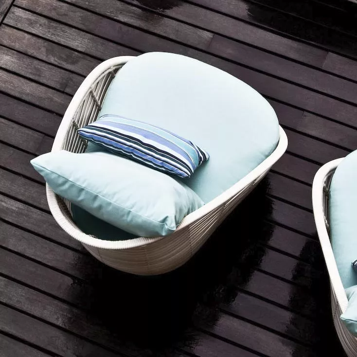 Die von Tulpen inspirierte Gartenmöbel Oase besteht aus Polyethylen-Streifen, die auf einem Aluminiumrahmen handgewebt sind. Wetterfeste Kissen machen diese Kollektion sehr komfortabel. Jedes Stück in der Oasis Kollektion Kenneth Cobonpue wird sorgfältig mit der Verwendung von Fertigkeiten aus vielen Generationen der philippinischen Handwerker von Hand gemacht. Reiche Tradition des Handwerks wird von Kenneth Cobonpue mit Investitionen in die Forschung, Entwicklung und Bildung unterstützt.