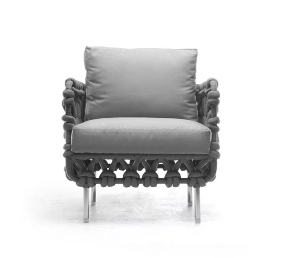 Kenneth Cobonpue Loungesessel Cabaret mit hoher RückenlehneKenneth Cobonpue Cabaret Gartensessel mit Synthetikgeflecht, aufgespannt auf einem Metallgestell sorgt für einen angenehmes Sitzerlebnis. Die Cabaret Kollektion wird von der Einfachheit und subtilen Schönheit der Kunst des Strickens inspiriert. Das weiche Geflecht aus stoffumwickeltem Schaum, aufgezogen auf einem Stahlrahmen, wirkt originell und modern. Es ist besonders widerstandsfähig gegenüber Hitze, Regen und UV-Strahlung. Die abgerundete Lounge Elemente der Cabaret Kollektion strahlen Komfort und Gemütlichkeit aus. Das transparente Design verleiht der Eindruck in der Luft zu schweben. Die besonders leichte Silhouette definiert die Cabaret Kollektion. Die Loungegruppe wirft einen schönen, dekorativen Schatten während die Sonne auf- und untergeht. Synthetikgeflecht Wetterbeständig Leicht zu reinigen Maße (B × T × H)81 × 78 × 100 cm