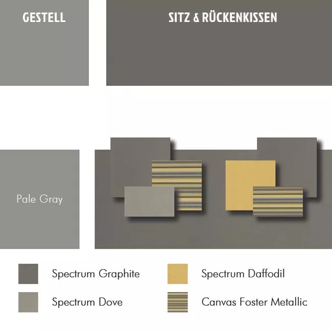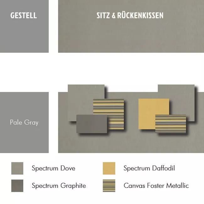 Polster: Sunbrella Spectrum Dove, Zierkissen: Graphite, Daffodil & Foster Metallic